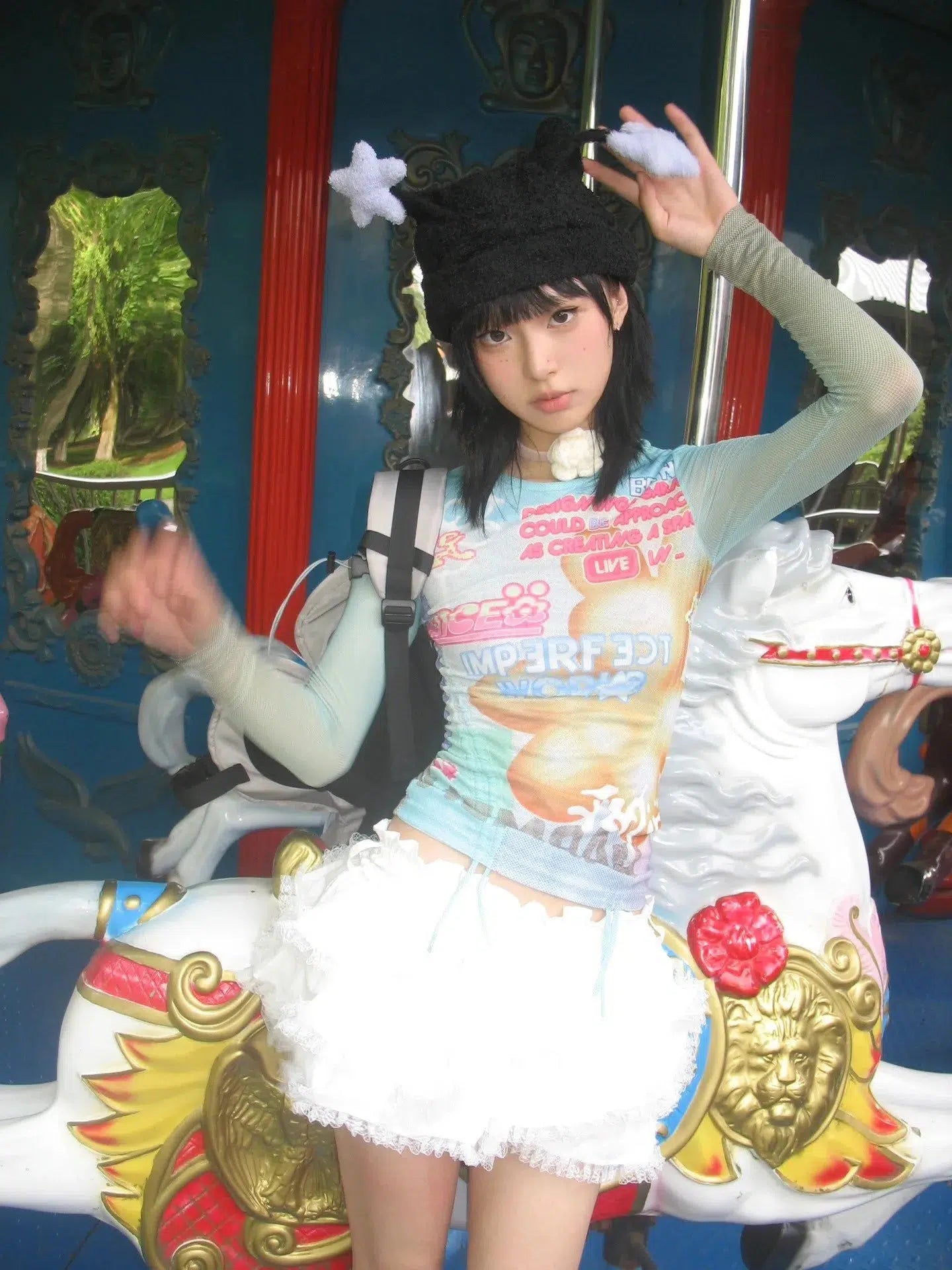 Soft Girl Rabbit Ribbon Top