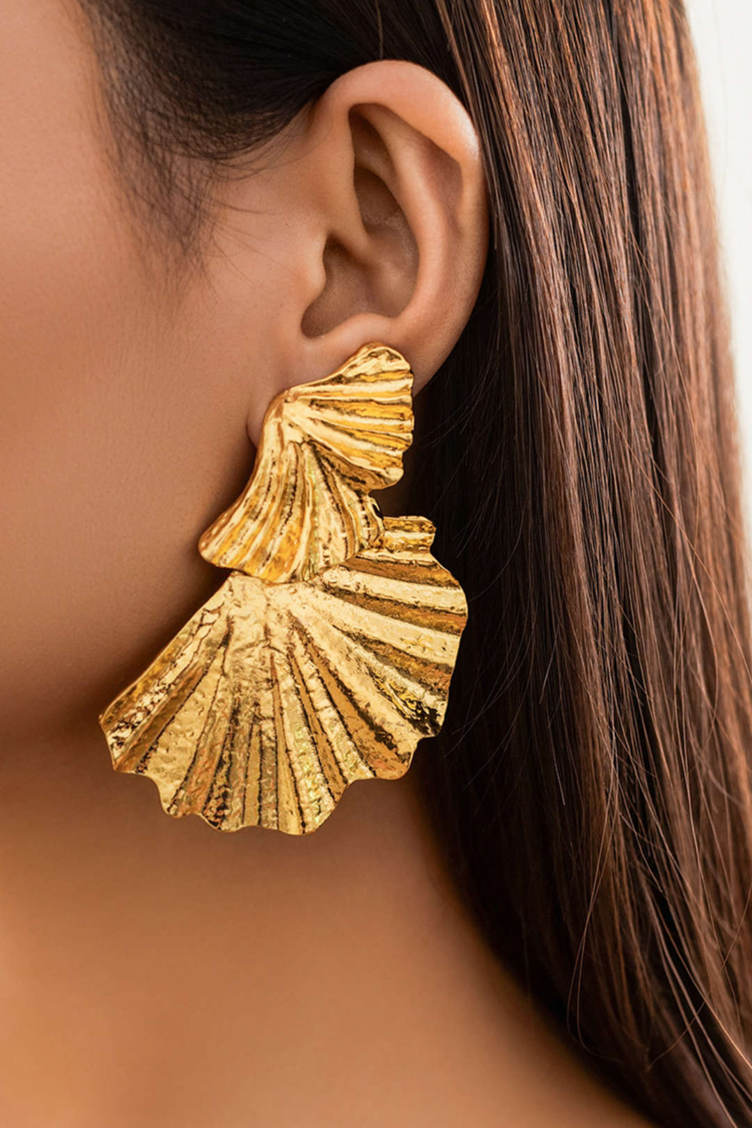 Ginkgo Leaves Shaped Metal Stud Earrings