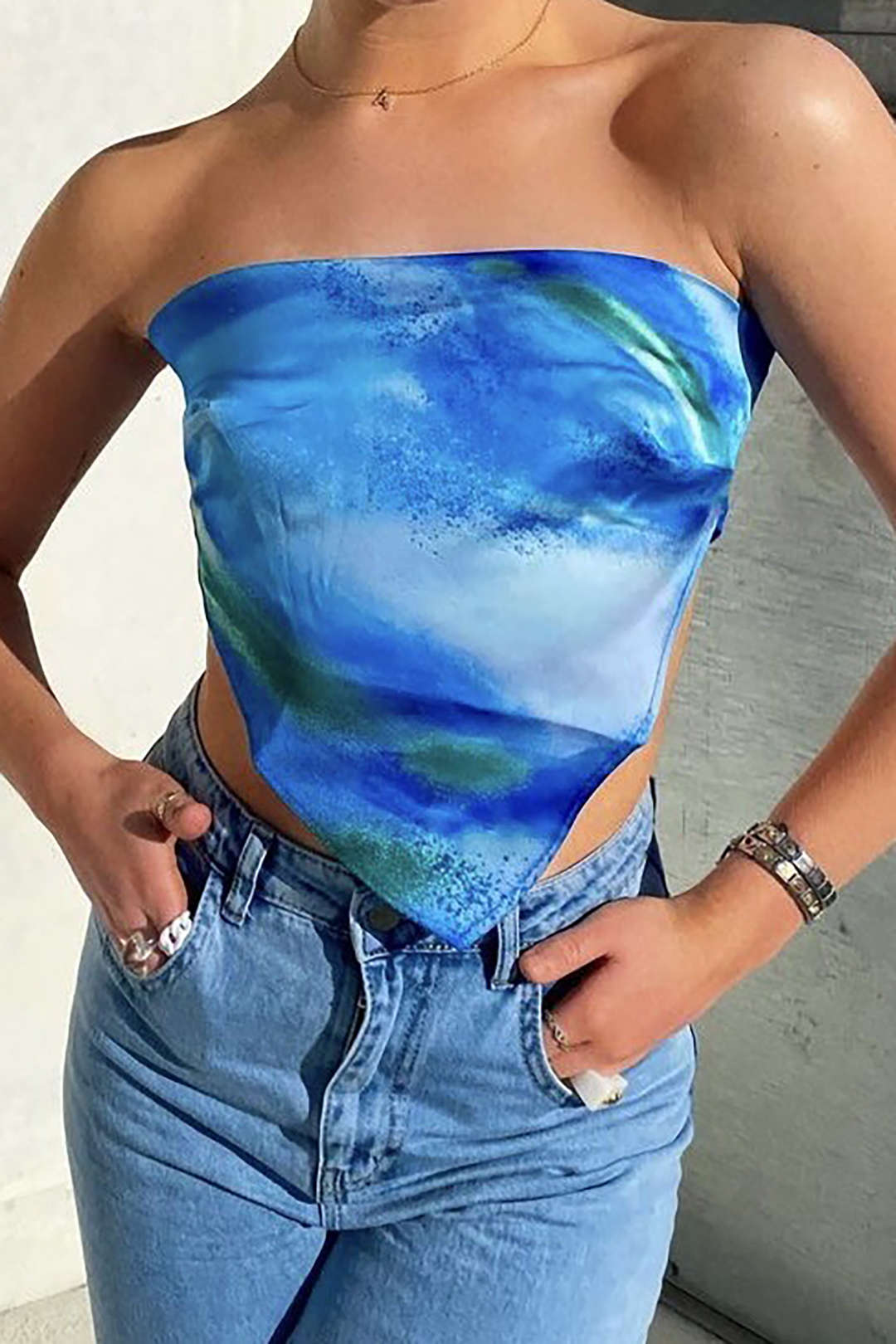 Multi Print One Shoulder Crop Top And Ruched Drawstring Mini Skirt Set