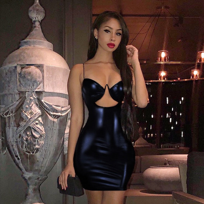 Faux Leather Cut Out Zipper Slit Slip Midi Dress
