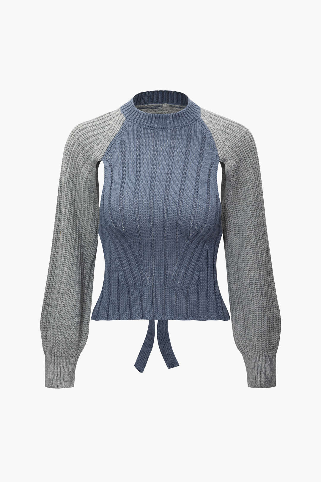 Contrast Denim Stitching Round Neck Sweater