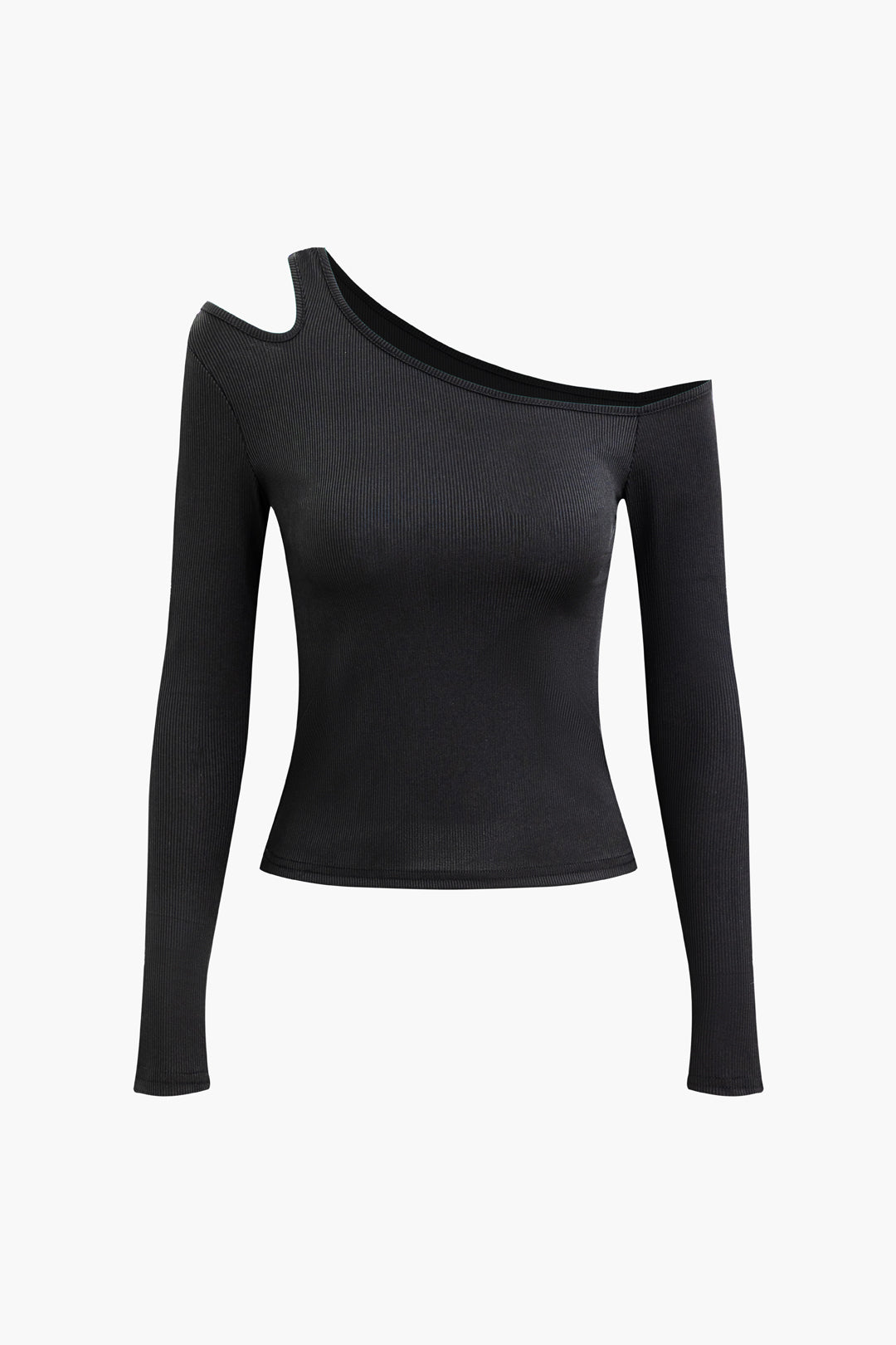 Solid Asymmetrical Cut Out Long Sleeve Top