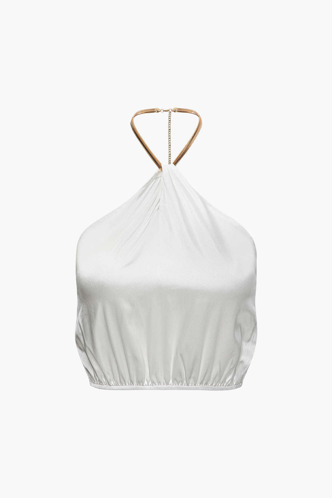 Metallic Faux Leather Turtle Neck Cap Sleeve Tank Top