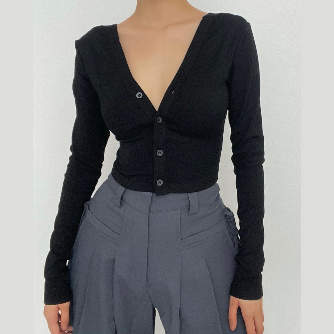 V neck flower pattern button knitted contrast long sleeve cardigan top