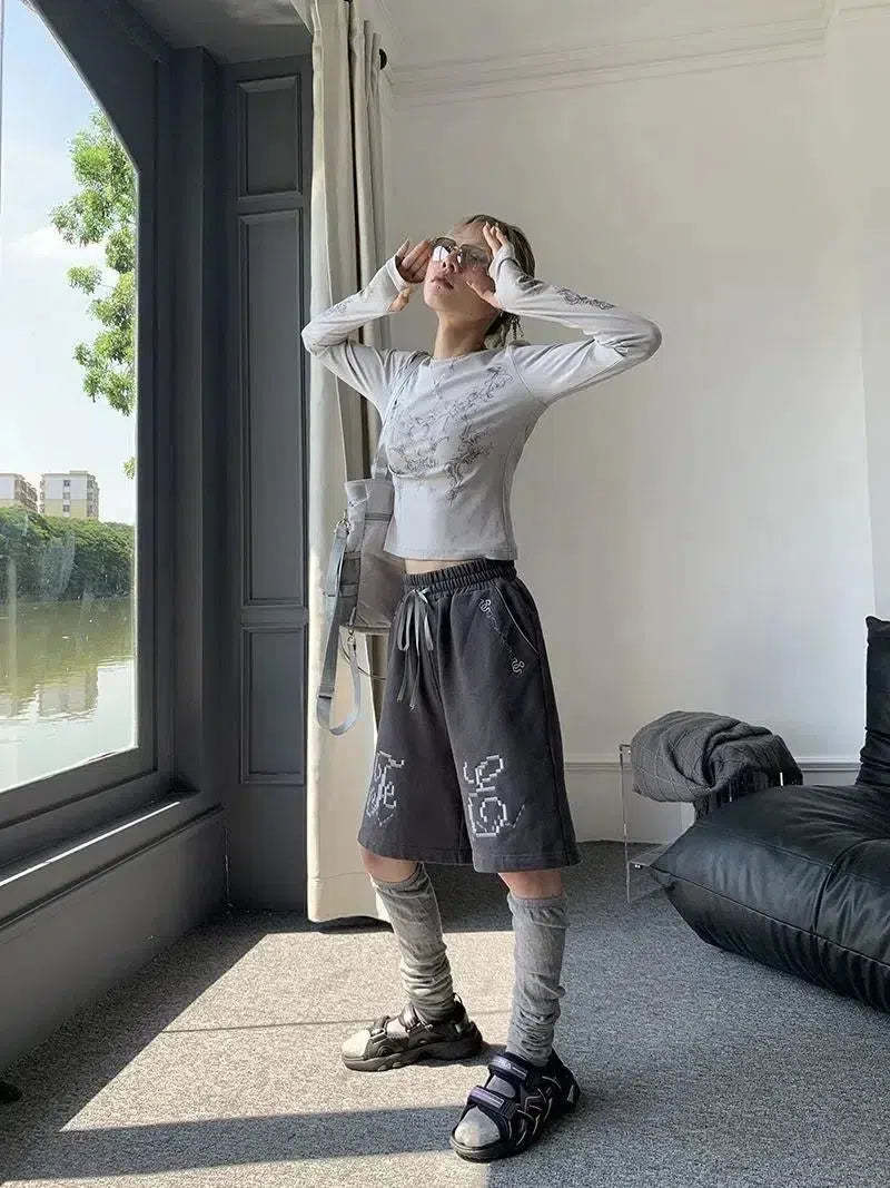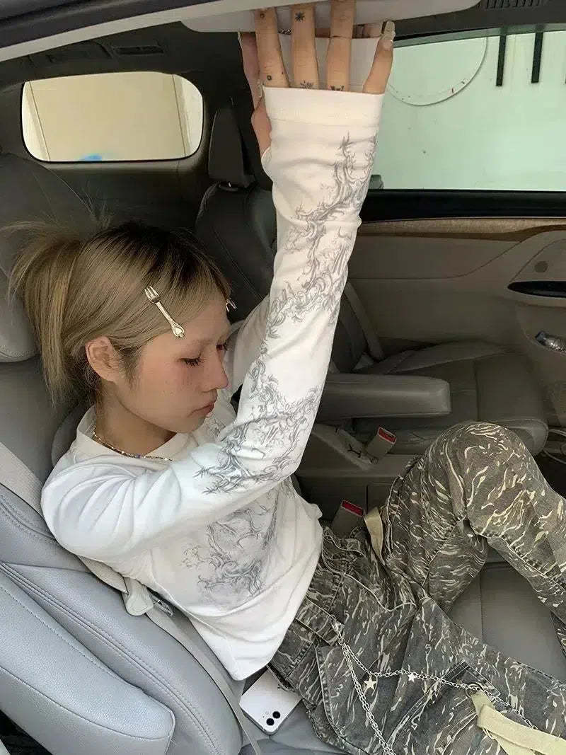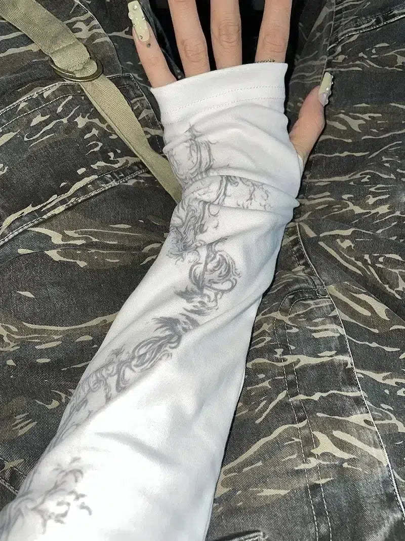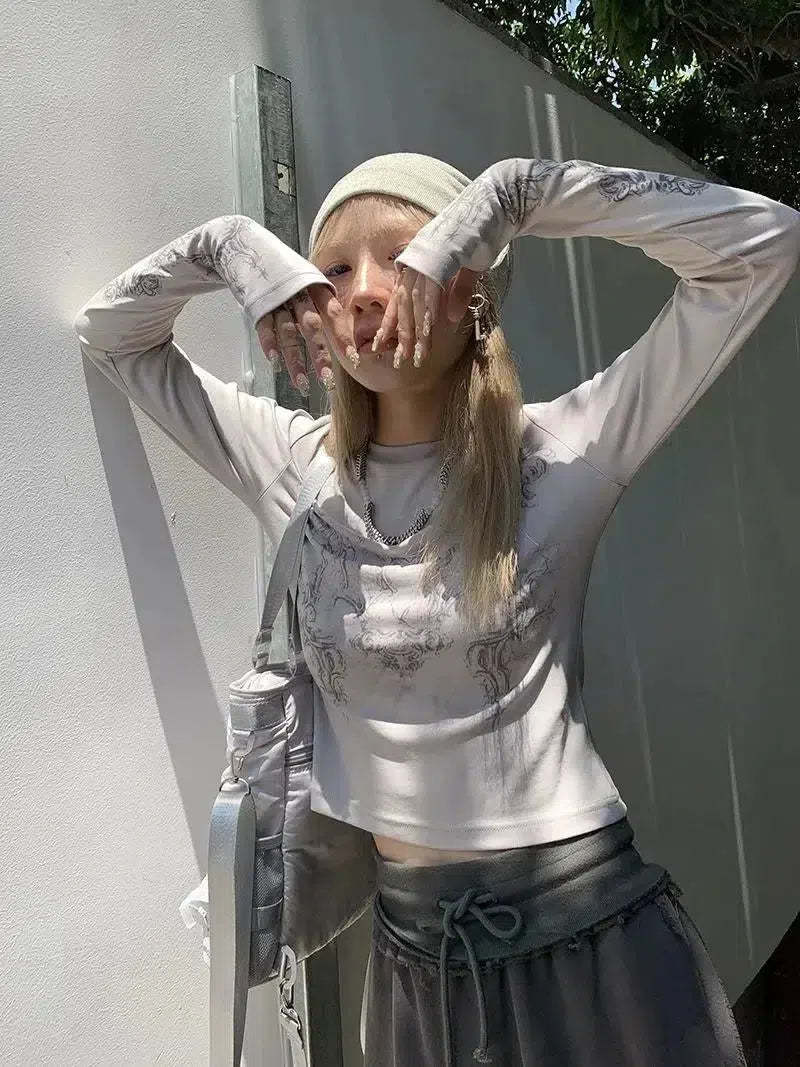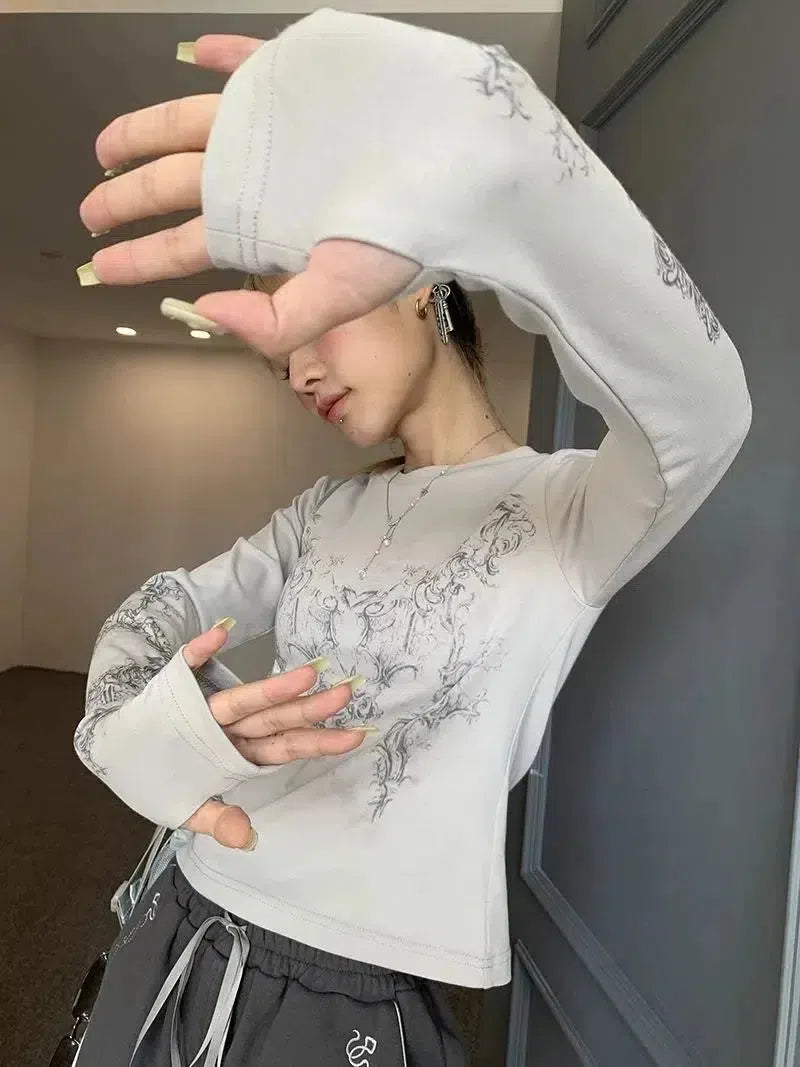 Stylish and comfortable. this grey top features intricate sigil patterns and extended cuffs for a modern look. Perfect for casual wear. it pairs effortlessly with various bottoms for a chic. laid-back vibe.