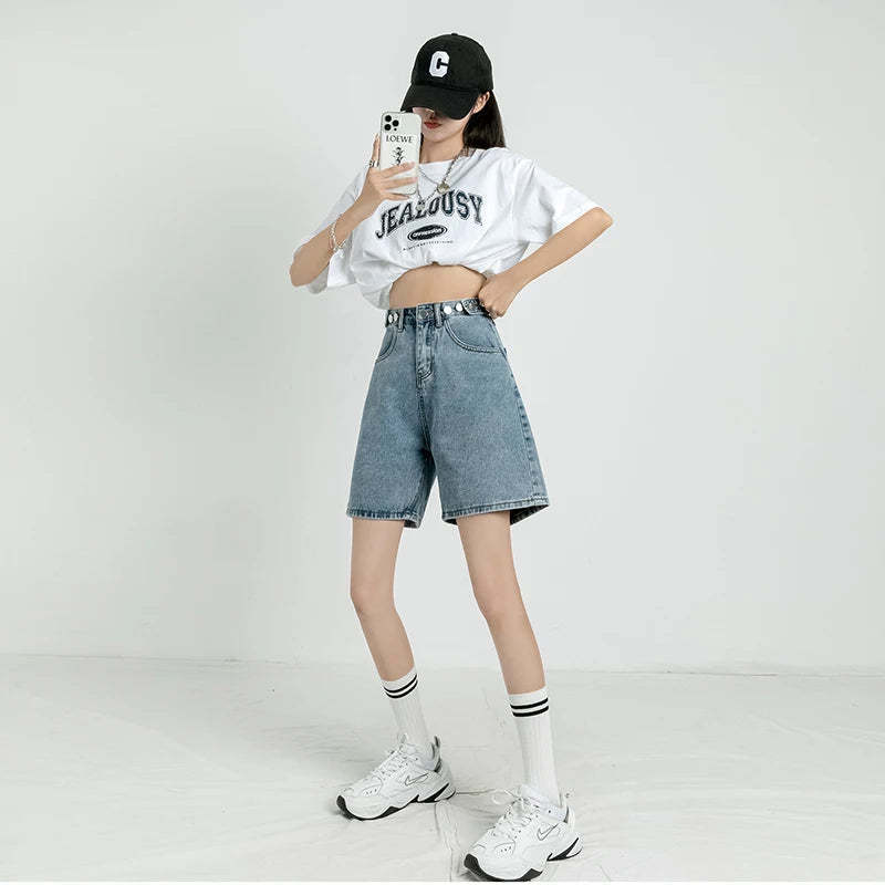 Adjustable Waist Denim Shorts