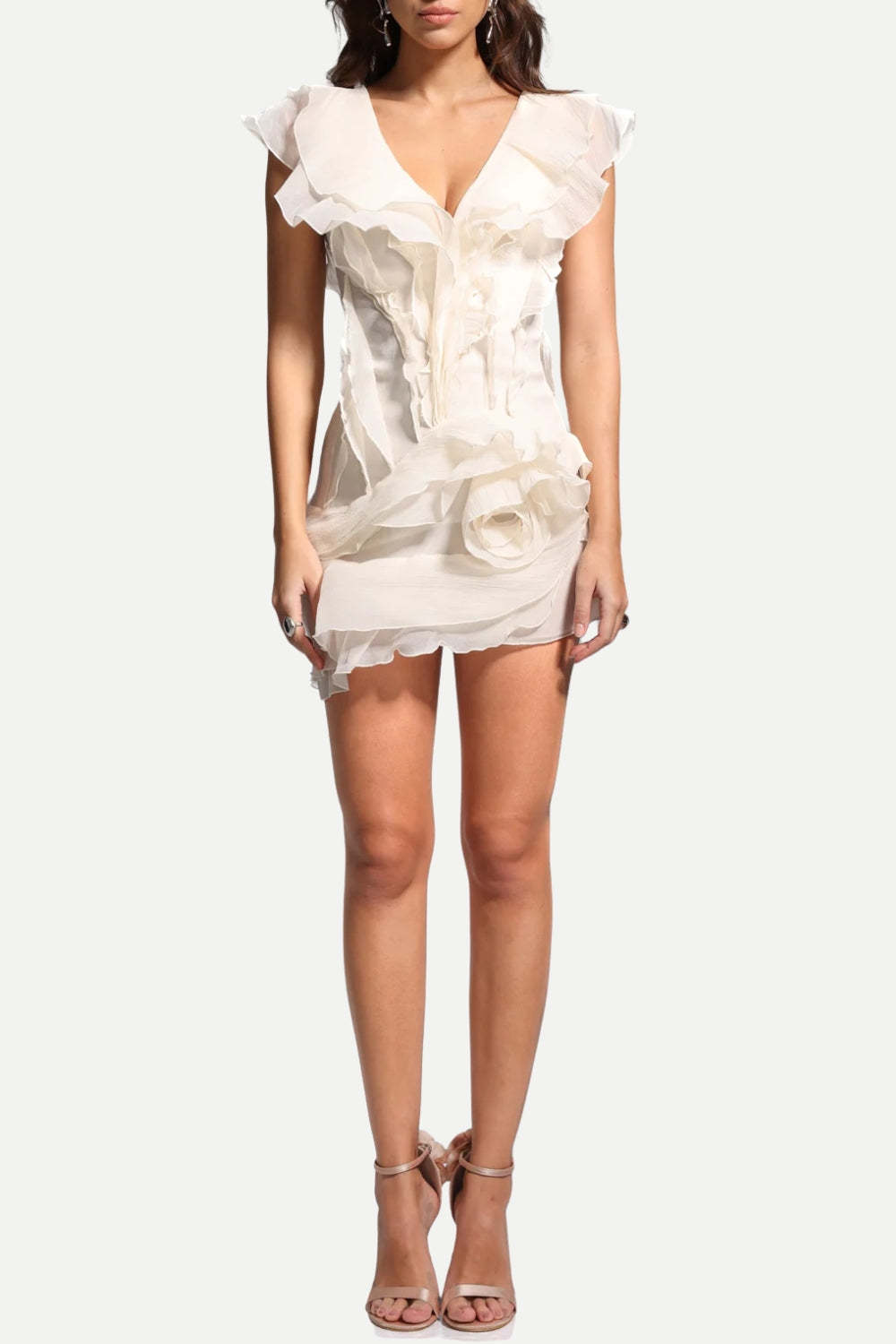 Soft. sweet. and made to move—this Asymmetric Ruffled Mini Dress brings a fresh twist to feminine charm. With cascading ruffles and a flattering V-neckline. this dreamy pink mini is perfect for date nights. garden parties. or any moment you want to feel effortlessly pretty.
