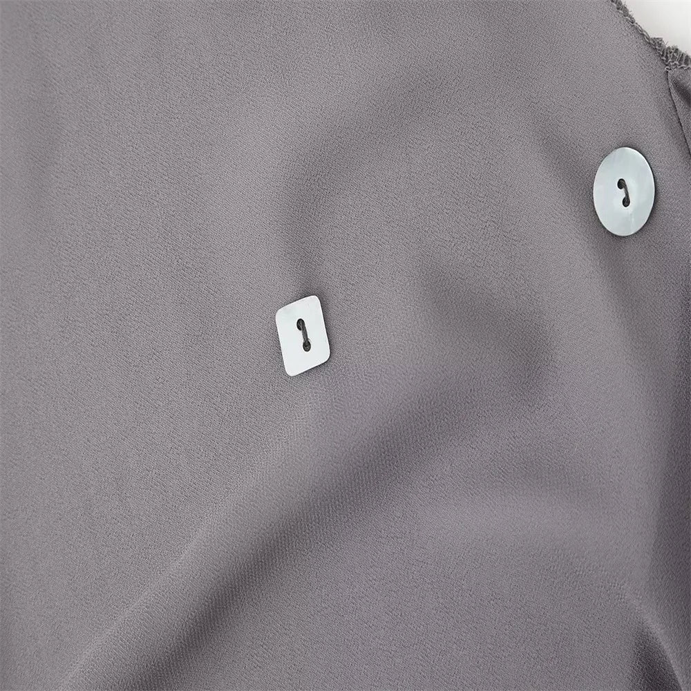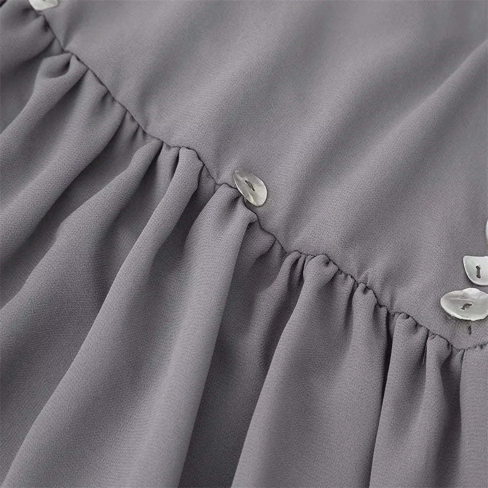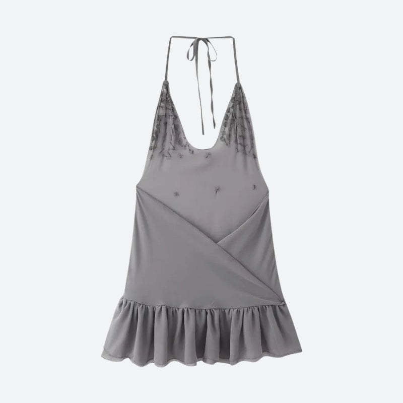 This Backless Button Mini Dress is made for sunset moments and moonlit parties. With sequin-like buttons. a deep plunge. and flirty ruffle hem. it's your go-to for catching eyes and breaking hearts.