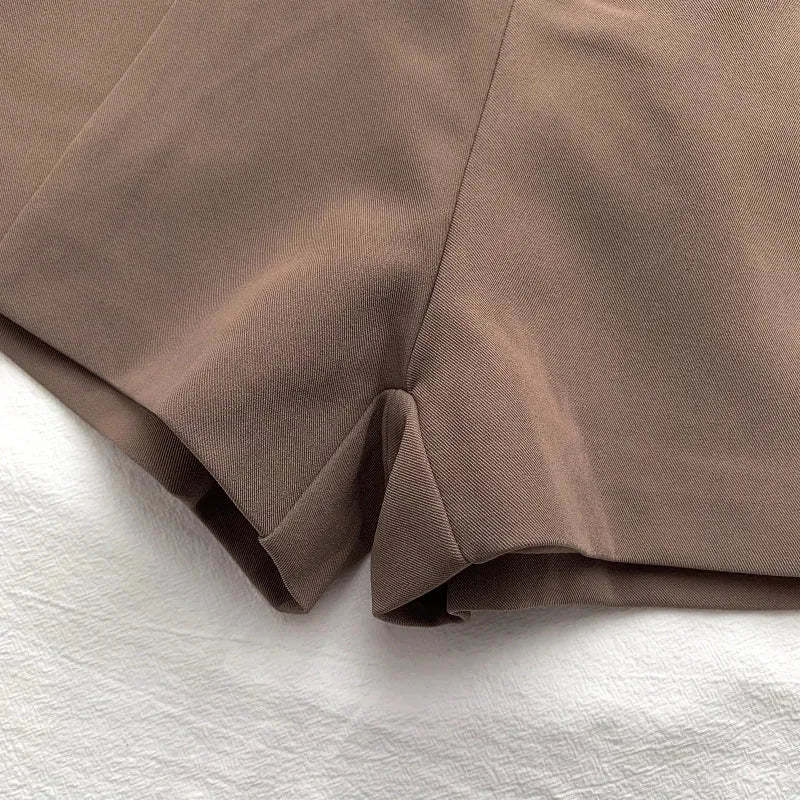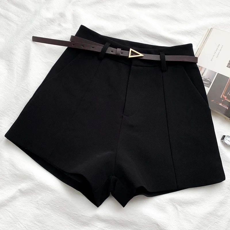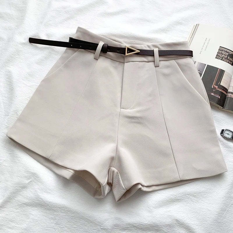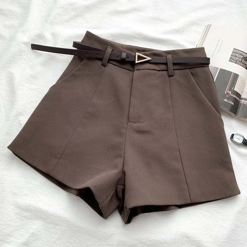 The Belted High Waisted Shorts are a chic and versatile wardrobe staple. perfect for both casual and semi-formal looks. These tailored shorts feature a flattering high-waist cut with clean pleats and come with a stylish triangle-buckle belt to complete the outfit effortlessly.