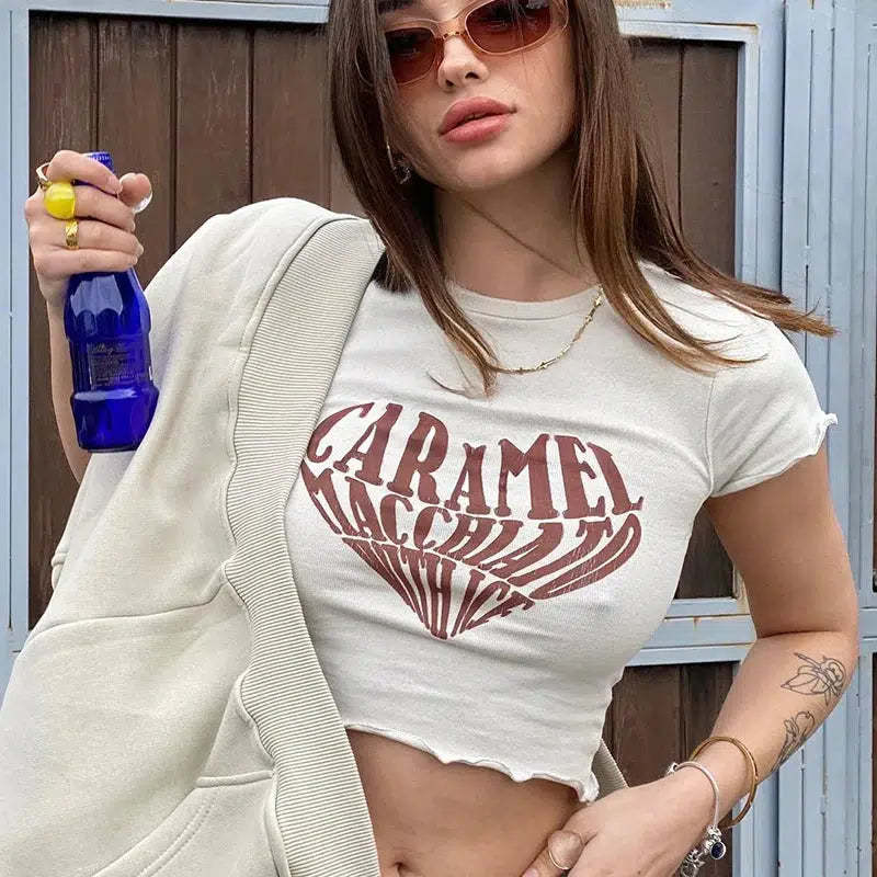 Its cropped fit and classic crew neck design make it a stylish yet comfortable choice for casual outings. The vintage-inspired graphic adds a whimsical touch. perfect for pairing with your favorite jeans or shorts. A must-have for any coffee enthusiast looking to add a fun piece to their wardrobe.