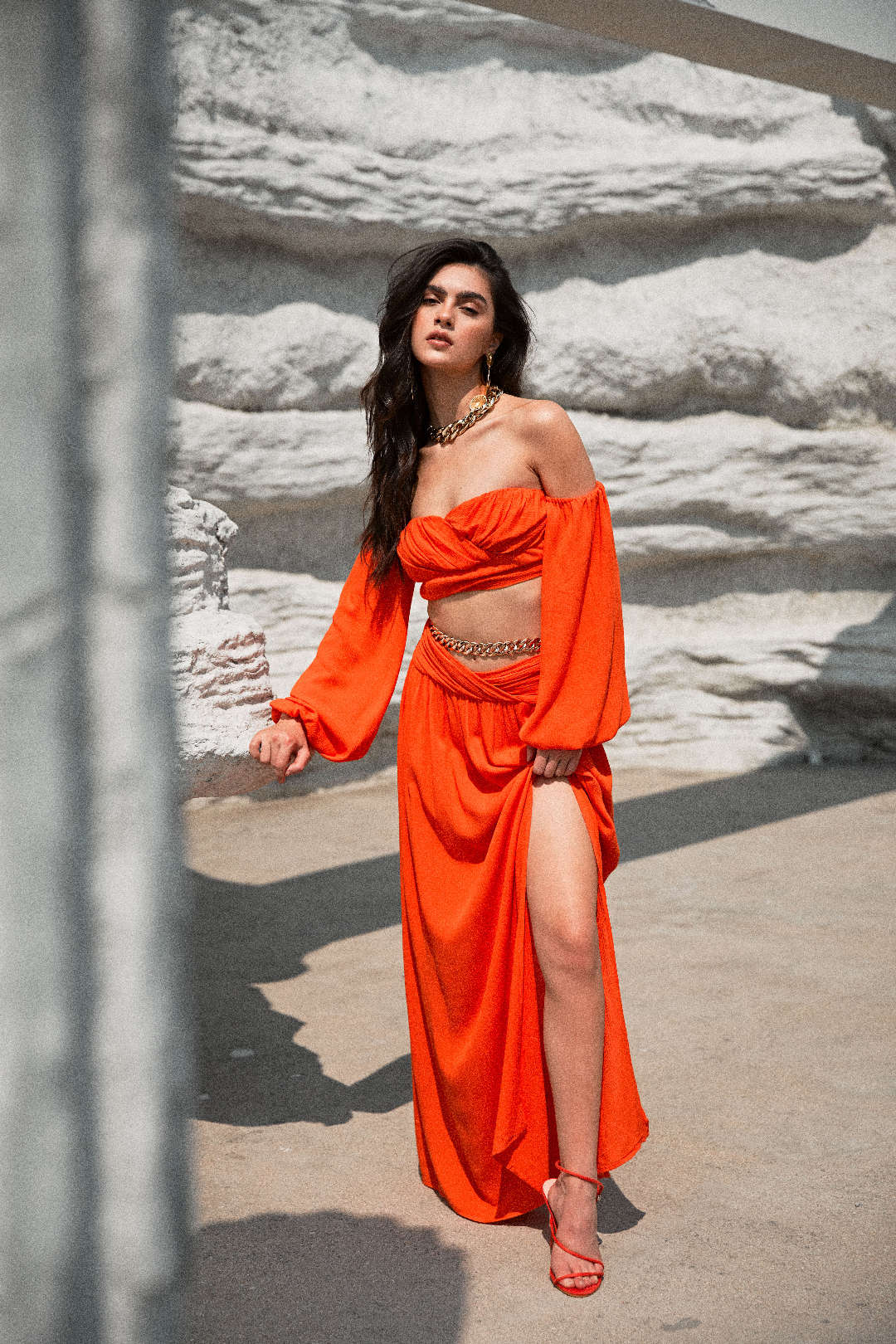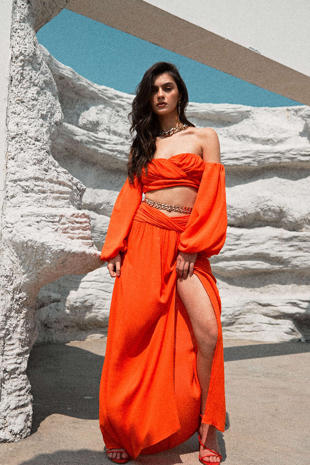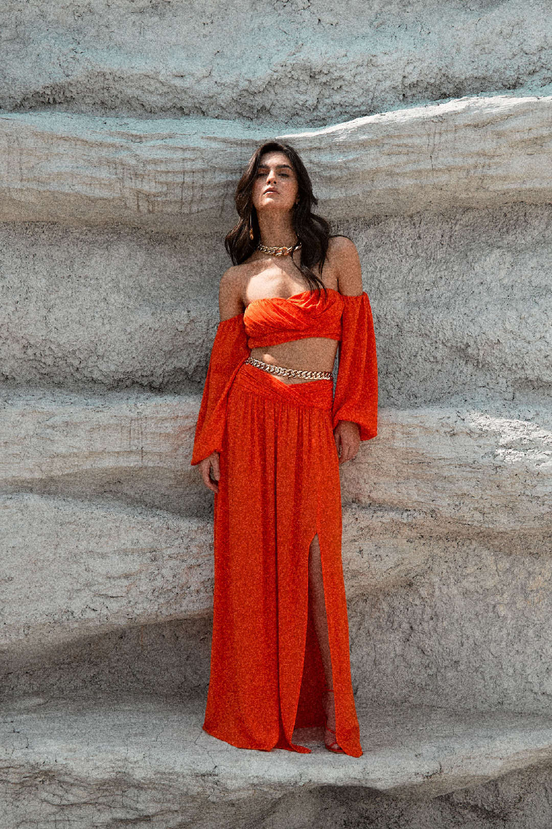 Chunky Chain Detail Slit Maxi Skirt