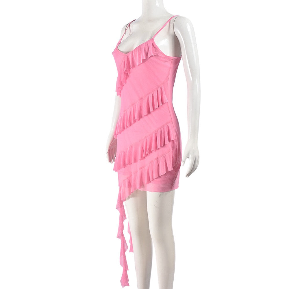 Color Block Ruffle V-Neck Mini Dress