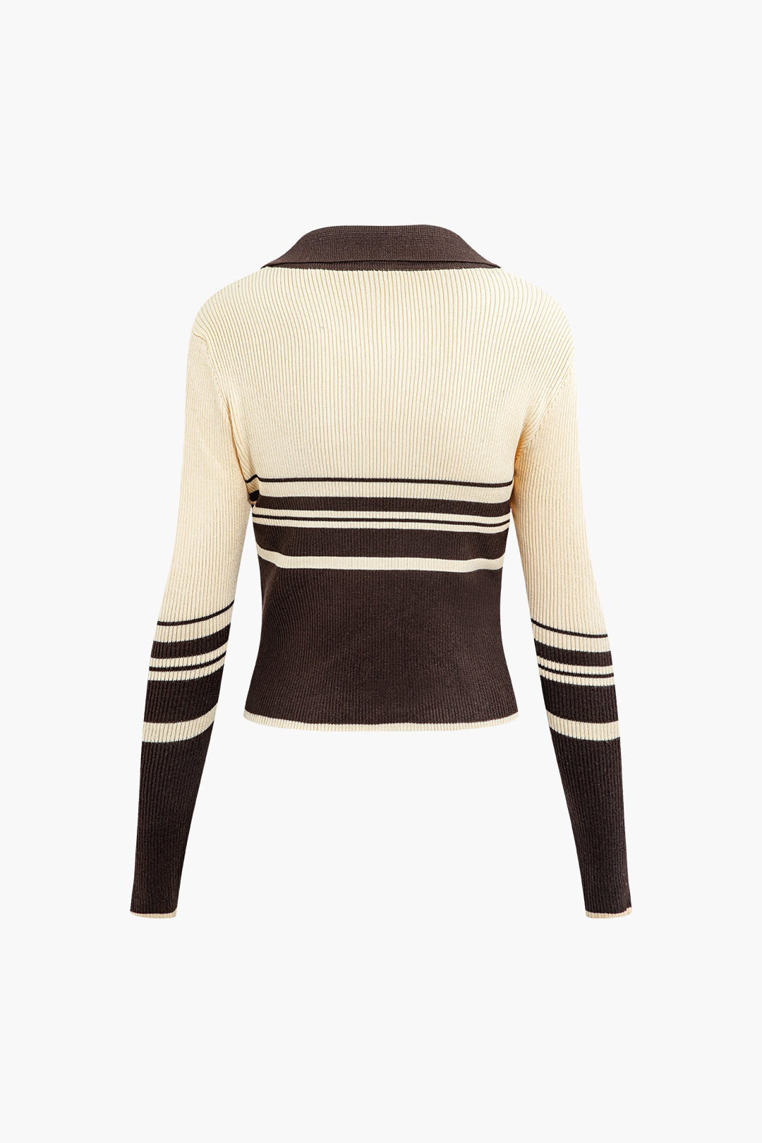Contrast Collar Zip Up Long Sleeve Cardigan
