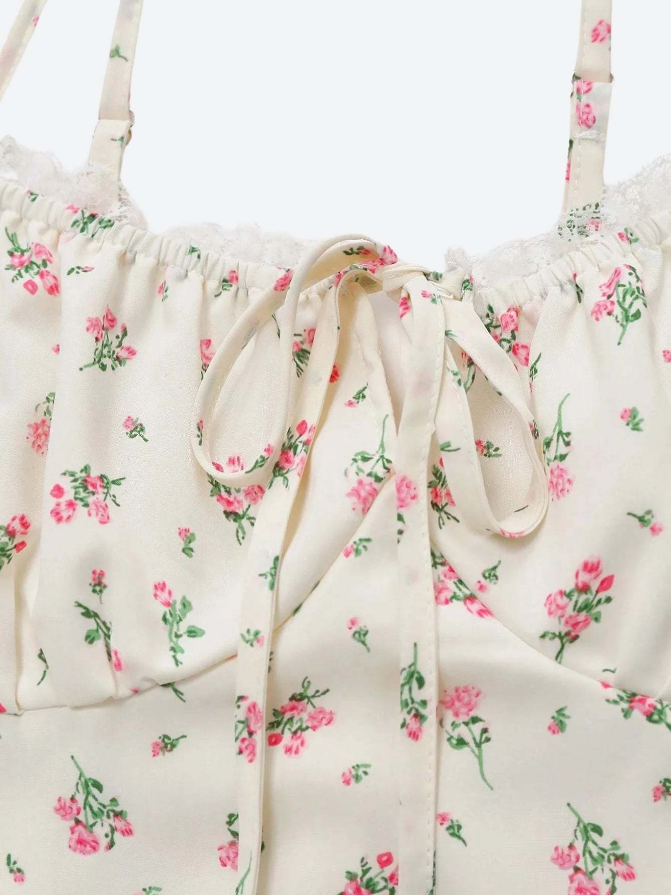 - Lace trim at bust