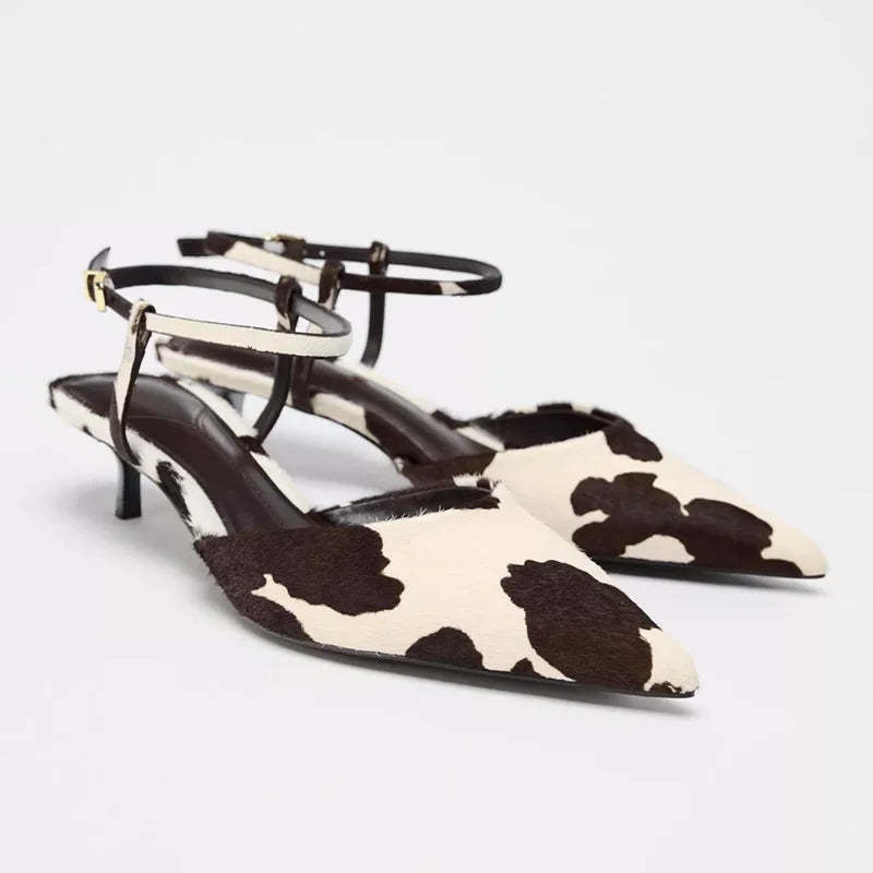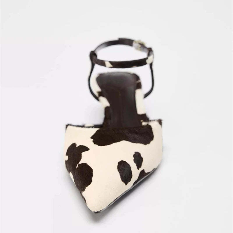 Moo-ve over basics—these Cow-Print Pointed Toe Kitten Heels are here to steal the spotlight. With a striking faux cowhide texture. these slingback heels combine playful Western energy with sleek sophistication. The pointed toe and ultra-low kitten heel give them that effortlessly chic silhouette. while the adjustable ankle strap adds a touch of polish. From brunch to after-dark plans. these shoes know how to make an entrance.