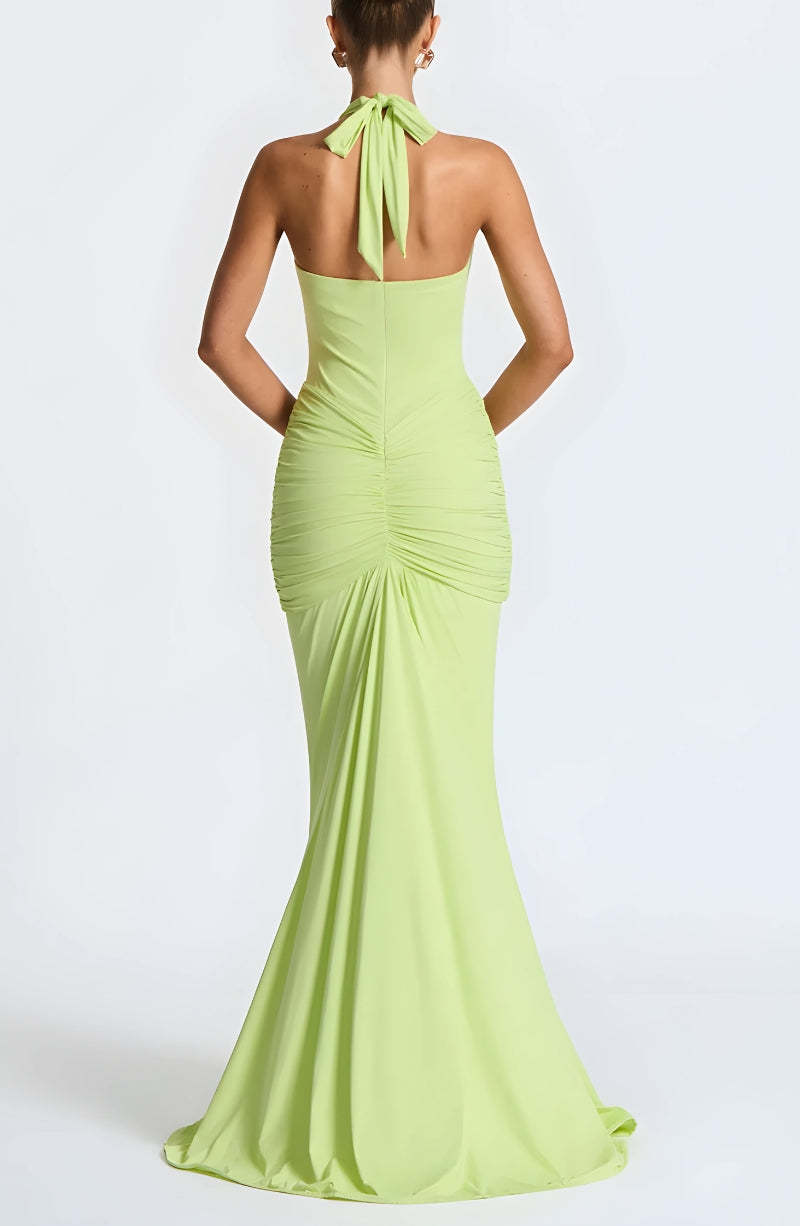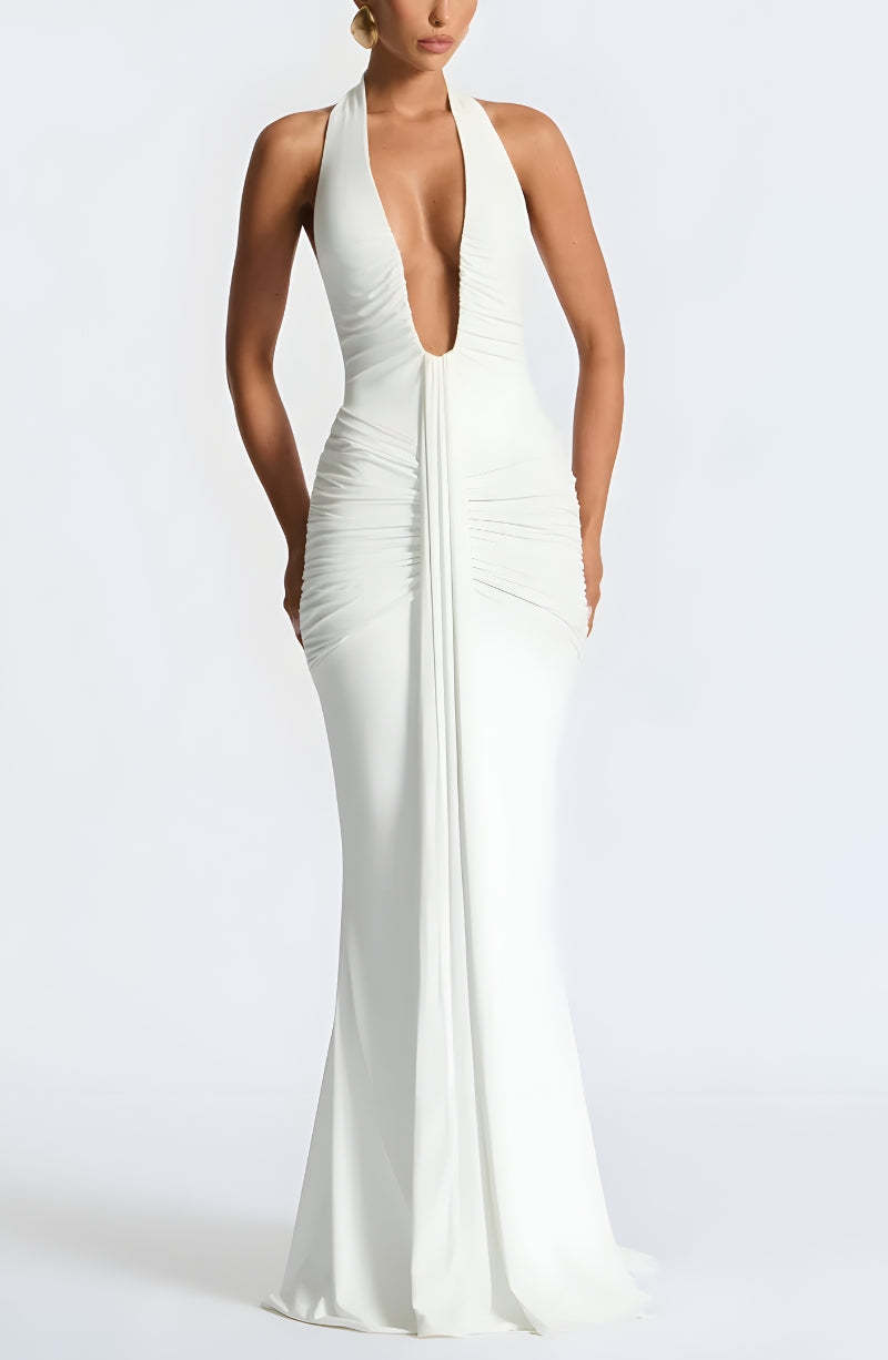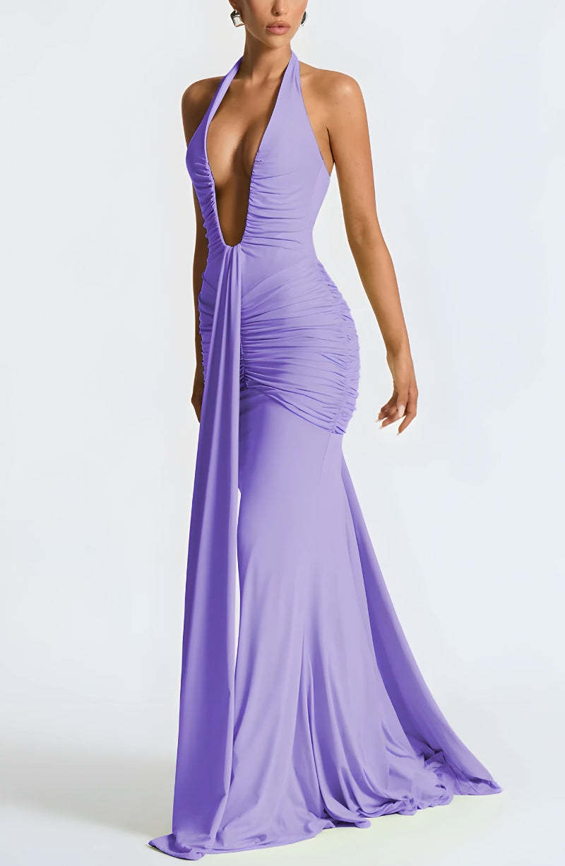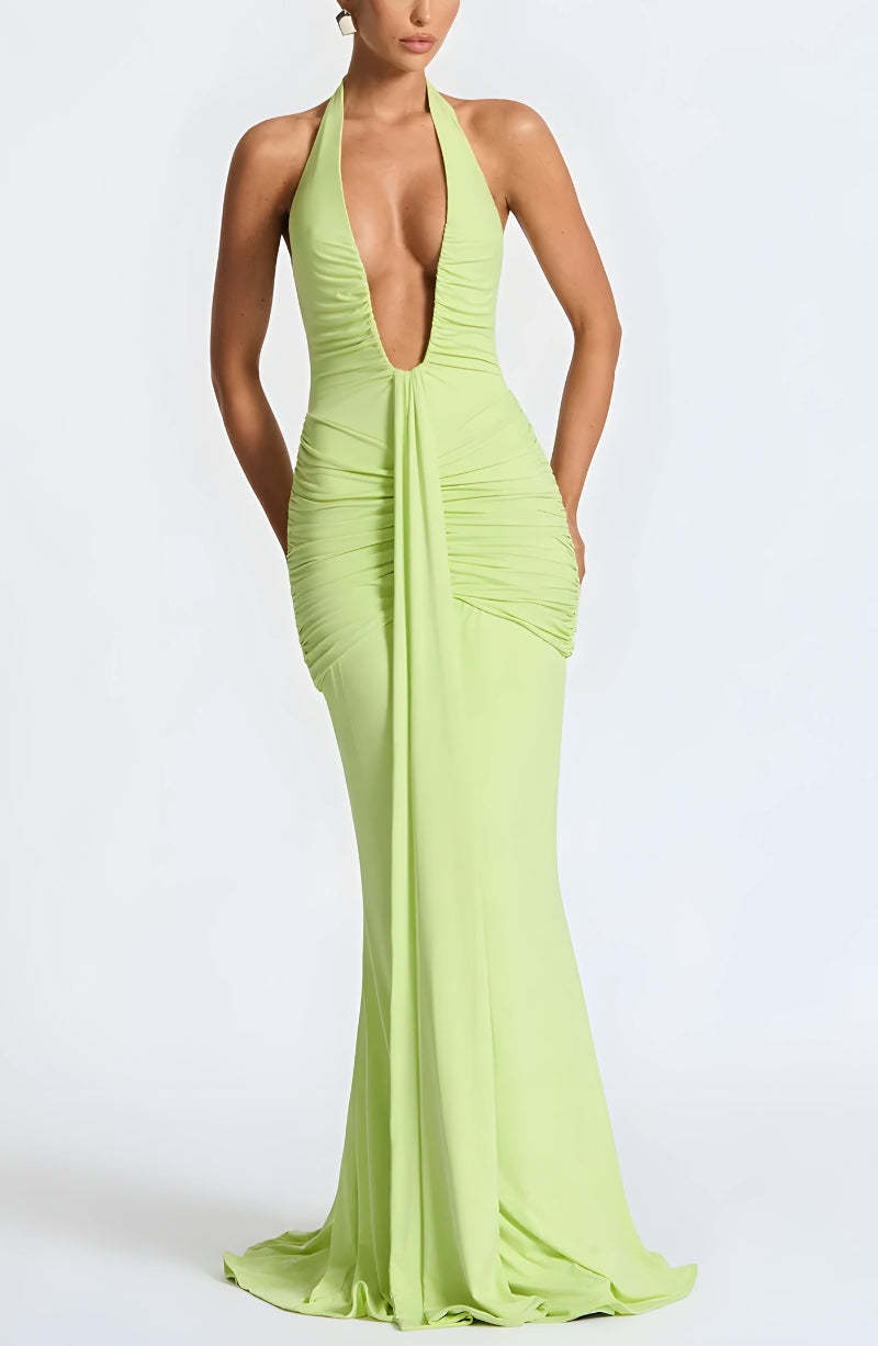 Deep Plunge Ruched Maxi Dress