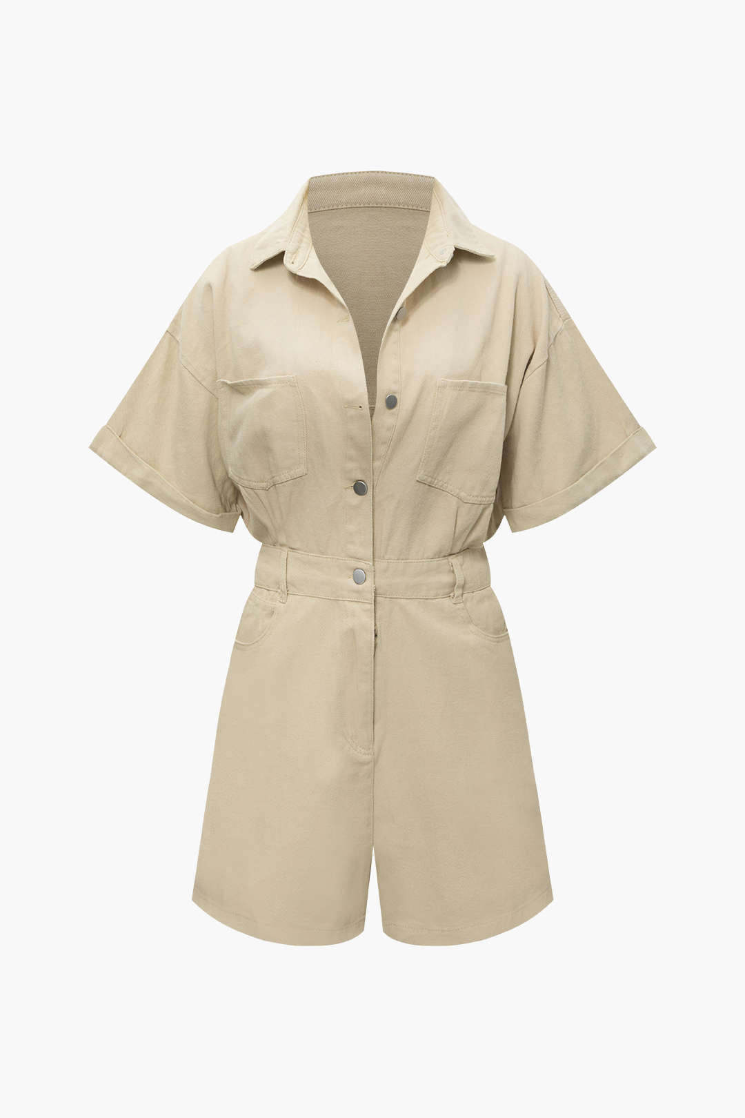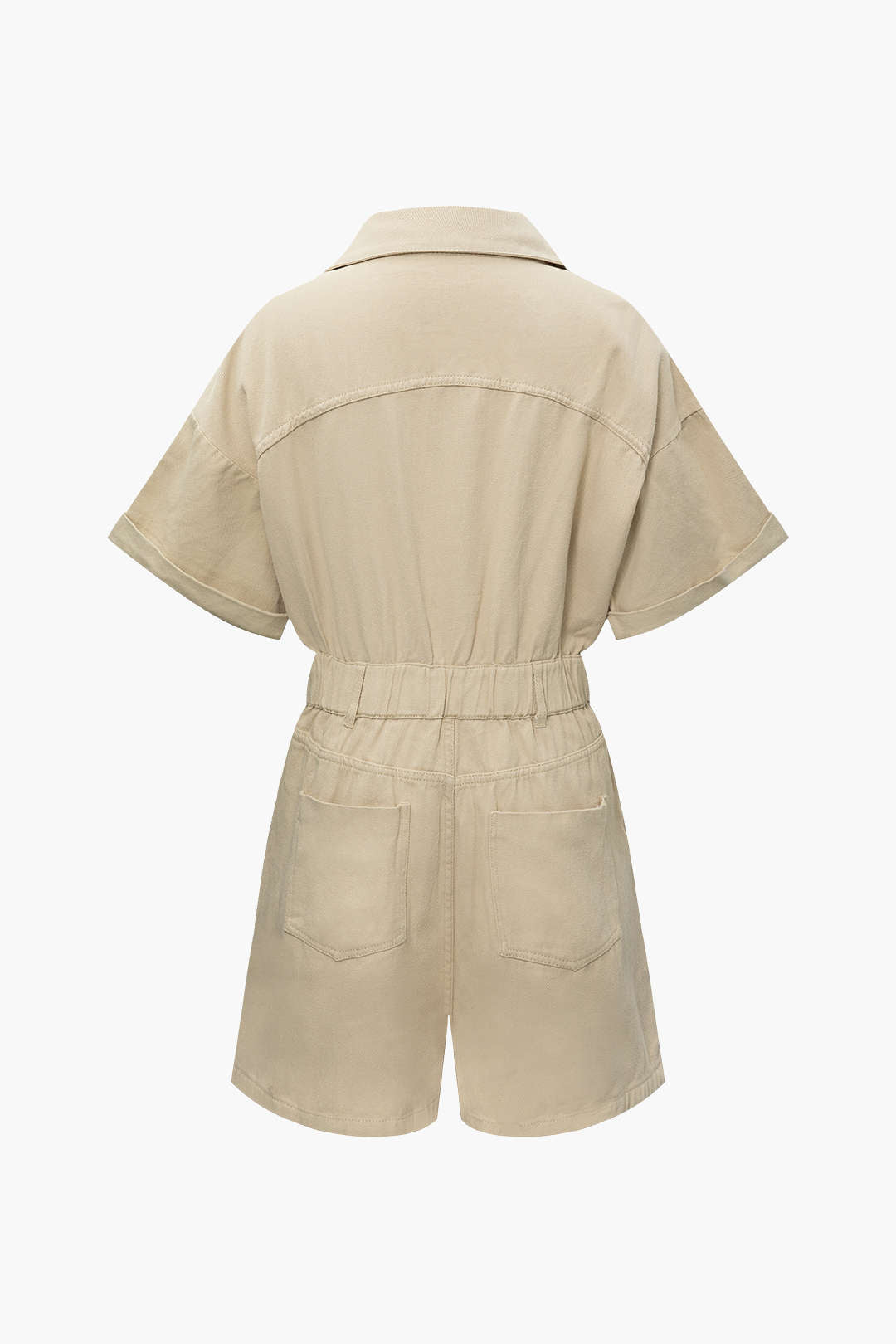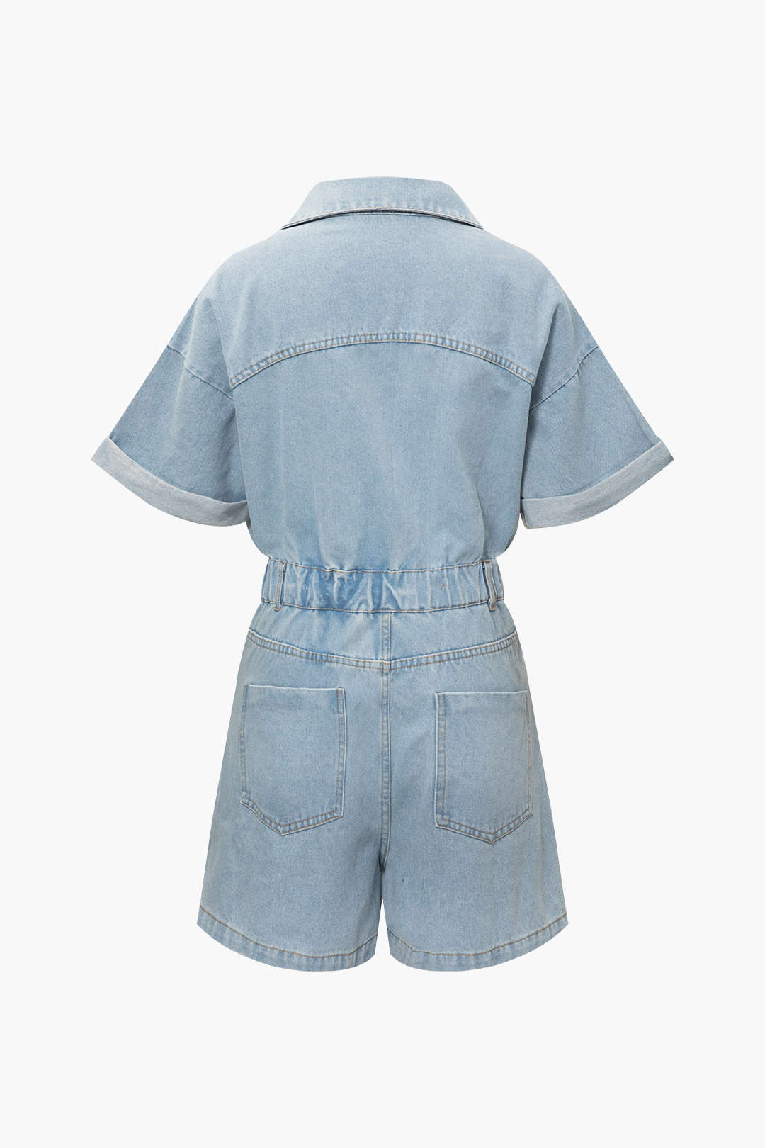 Denim Multi Pocket Button Rolled Cuff Jumpsuit