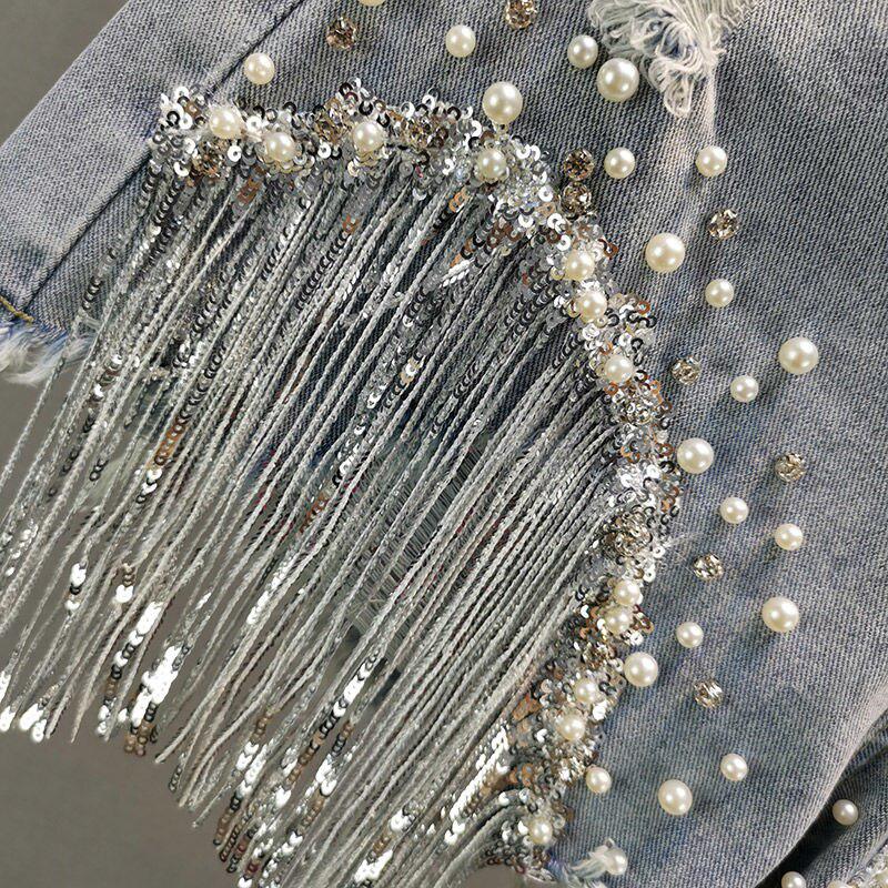 Disco Cowgirl Rhinestone Fringe Denim Shorts