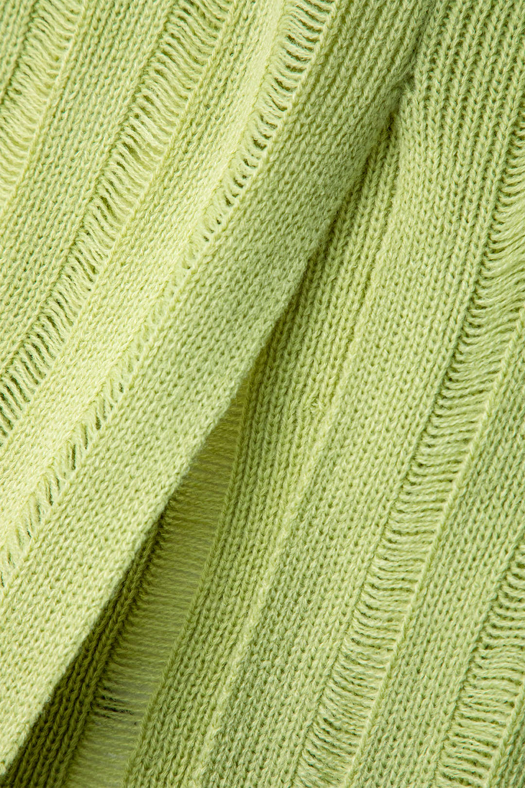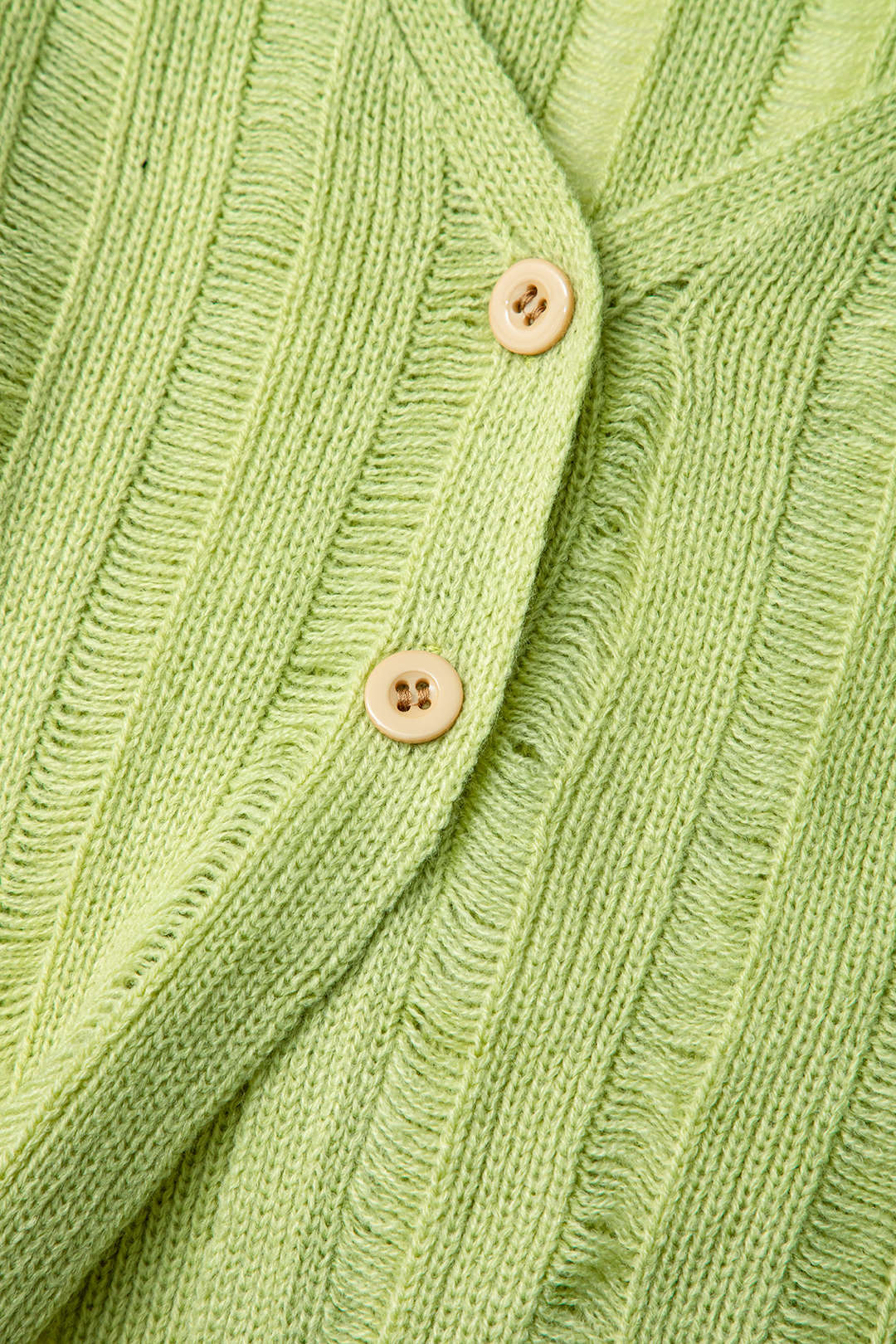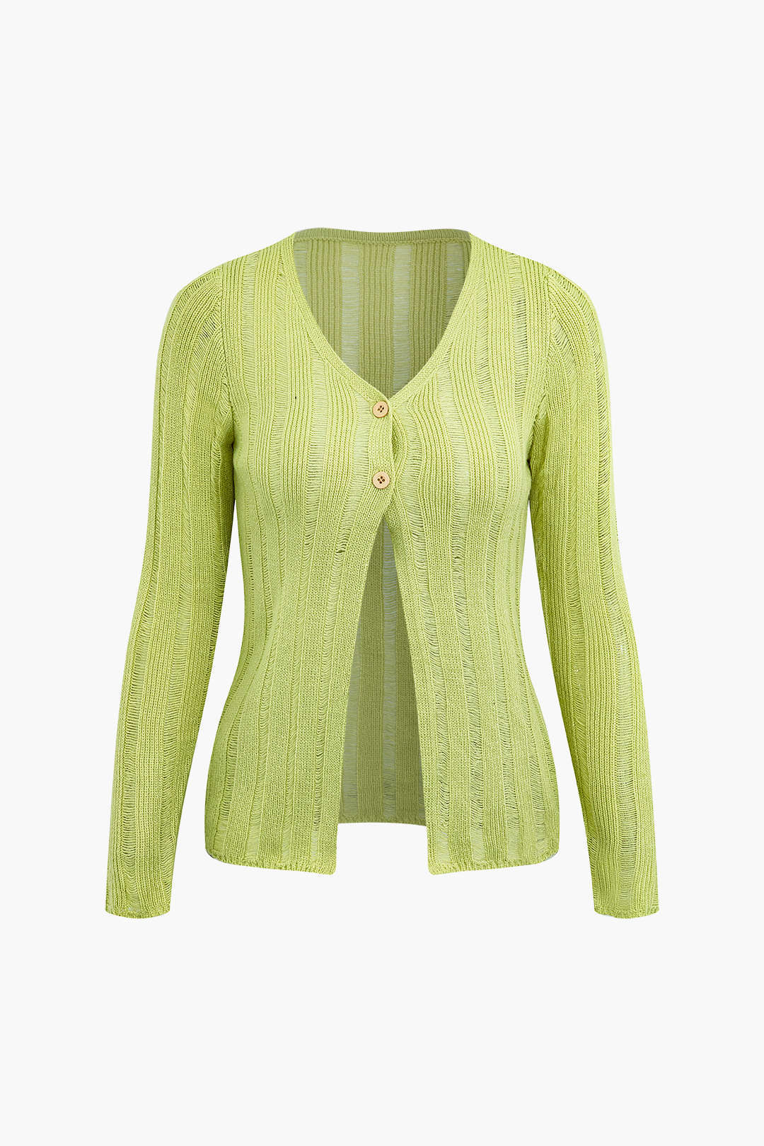 Distressed Ladder V-neck Cardigan And Slit Knit Maxi Skirt Set