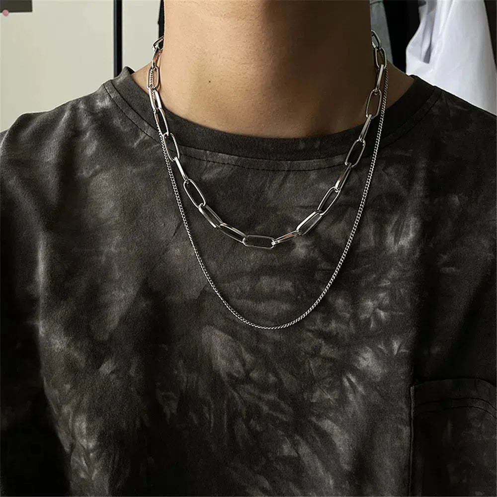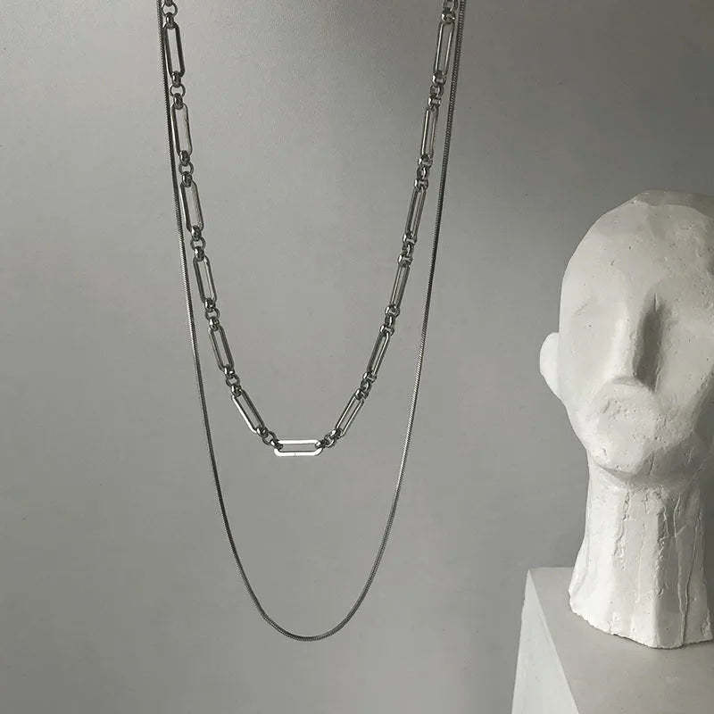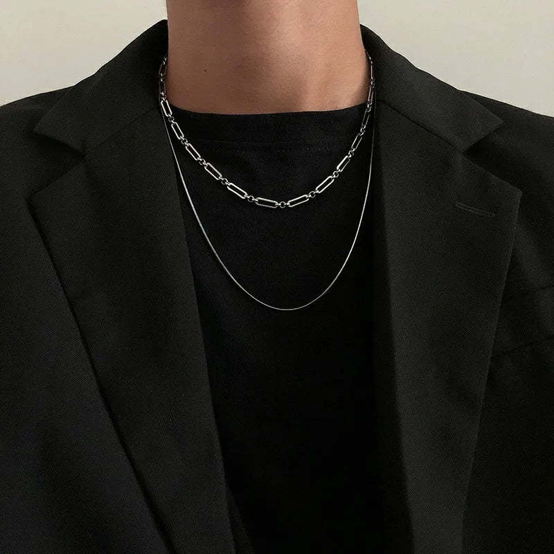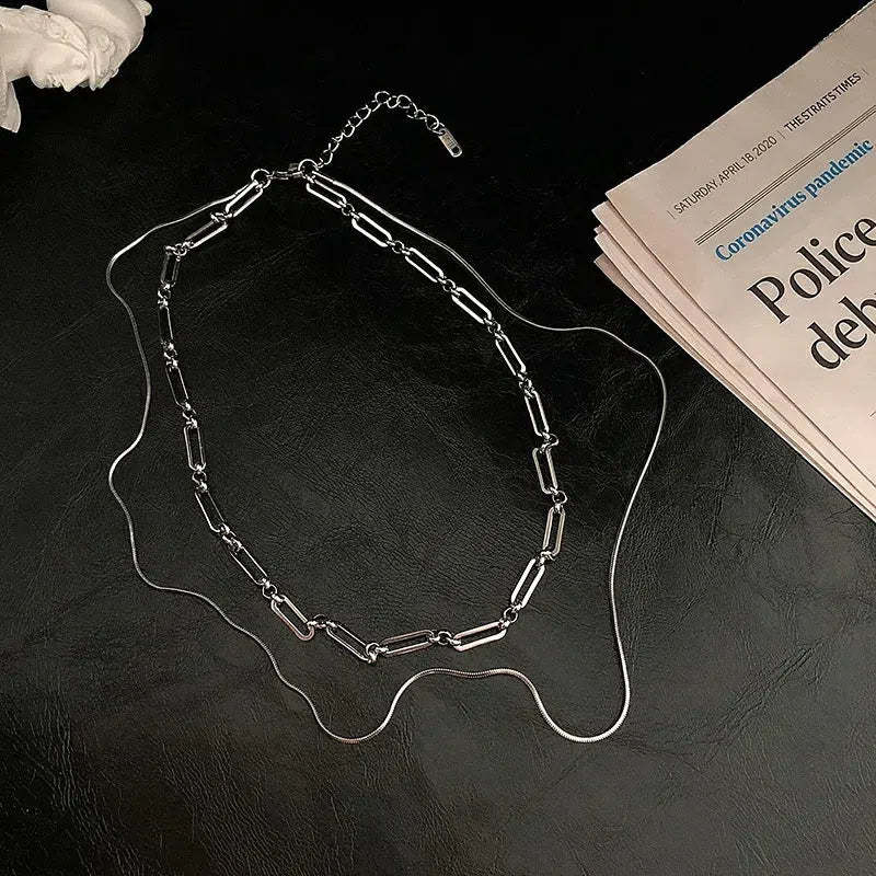 This double chain necklace blends minimalism with an industrial edge. The layered design features a sleek snake chain paired with a bold link chain for a versatile statement piece. Crafted from high-quality metal. it's perfect for everyday wear or styling with streetwear looks.