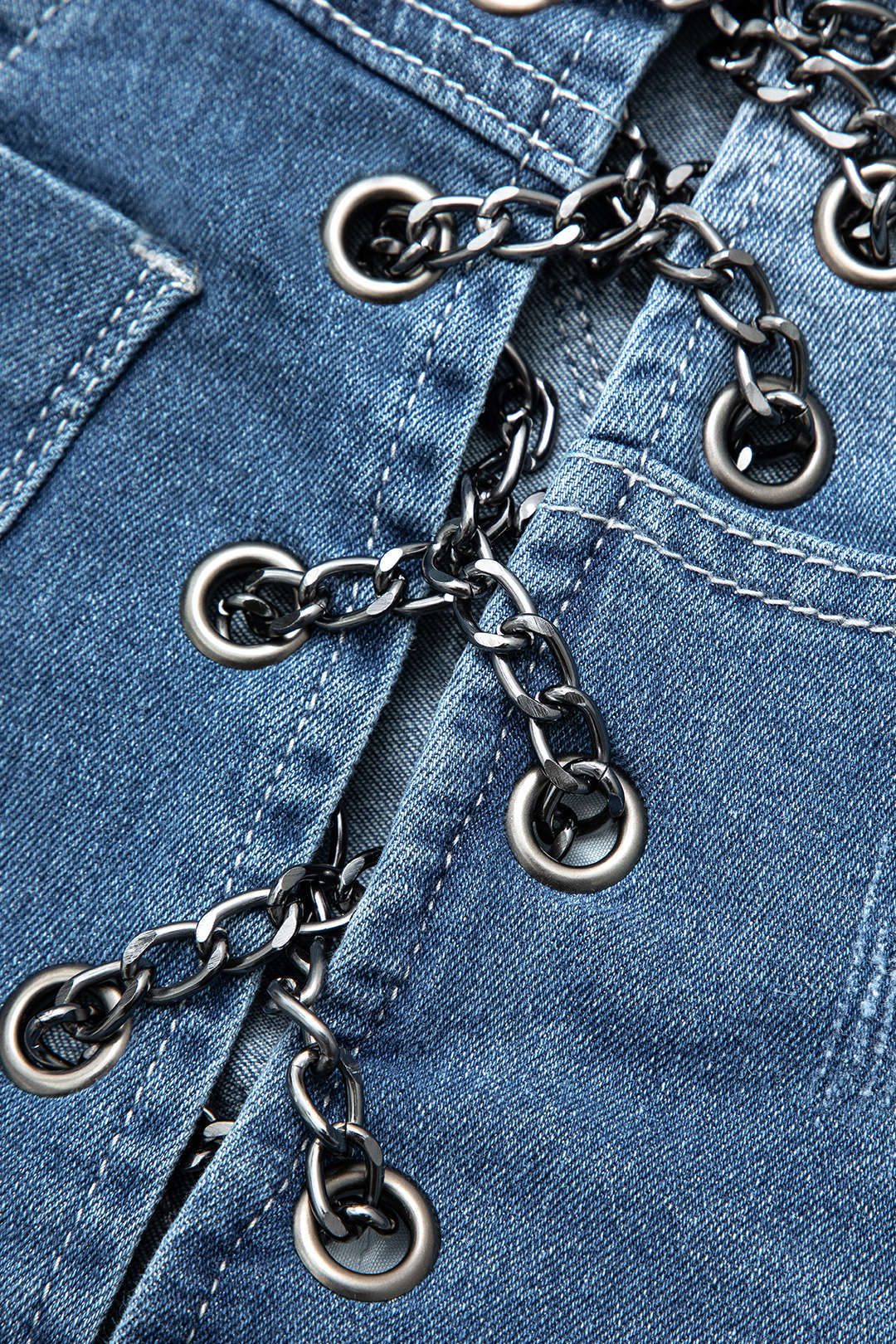 Faded Destroyed Chain Detail Denim Shorts
