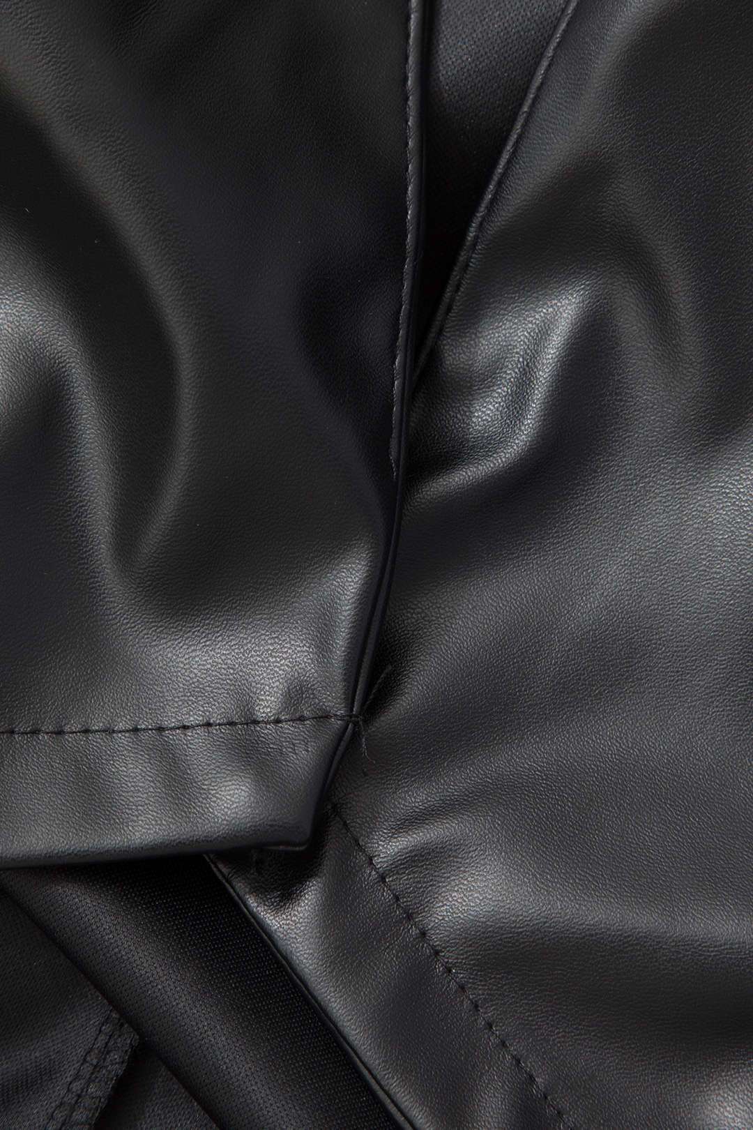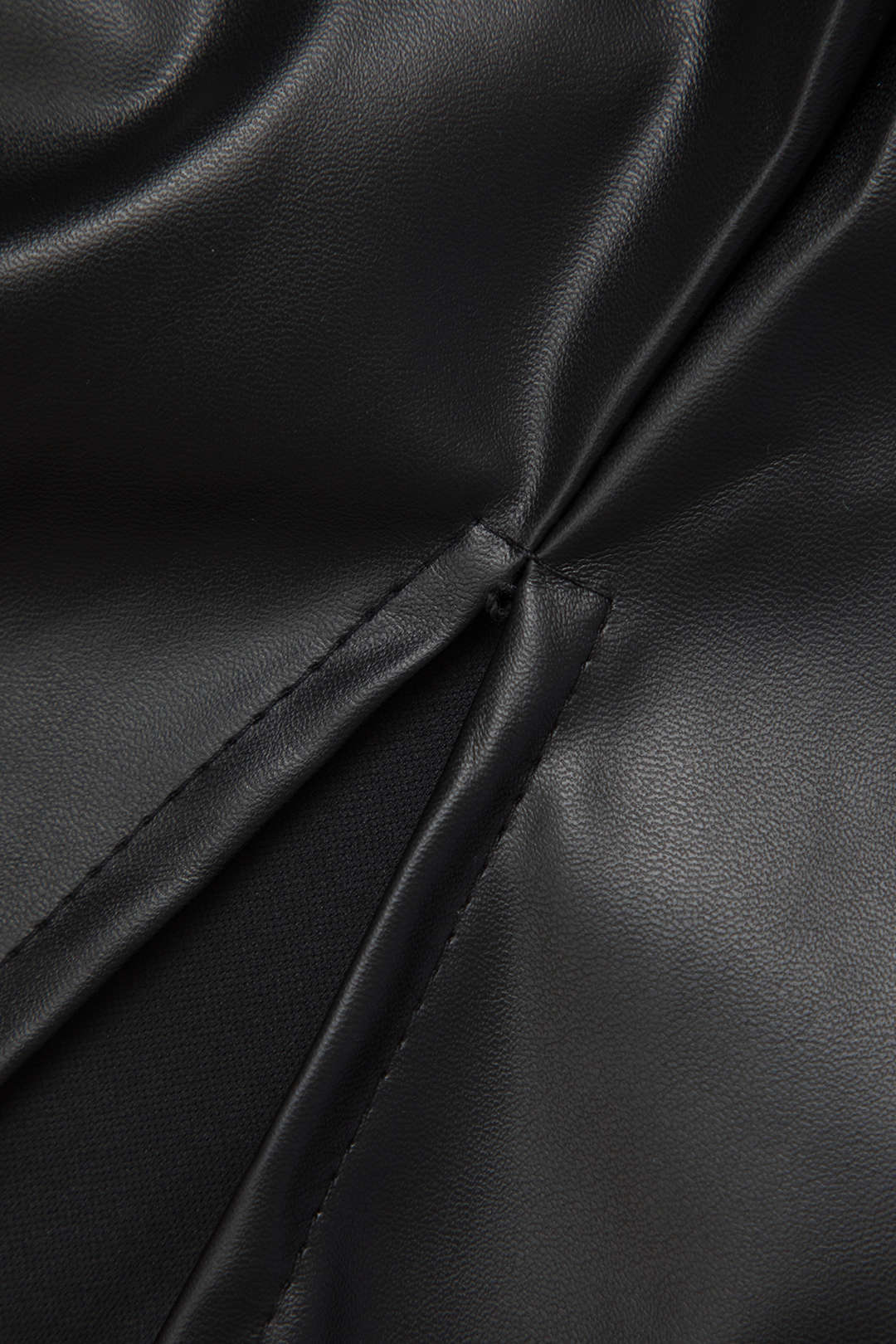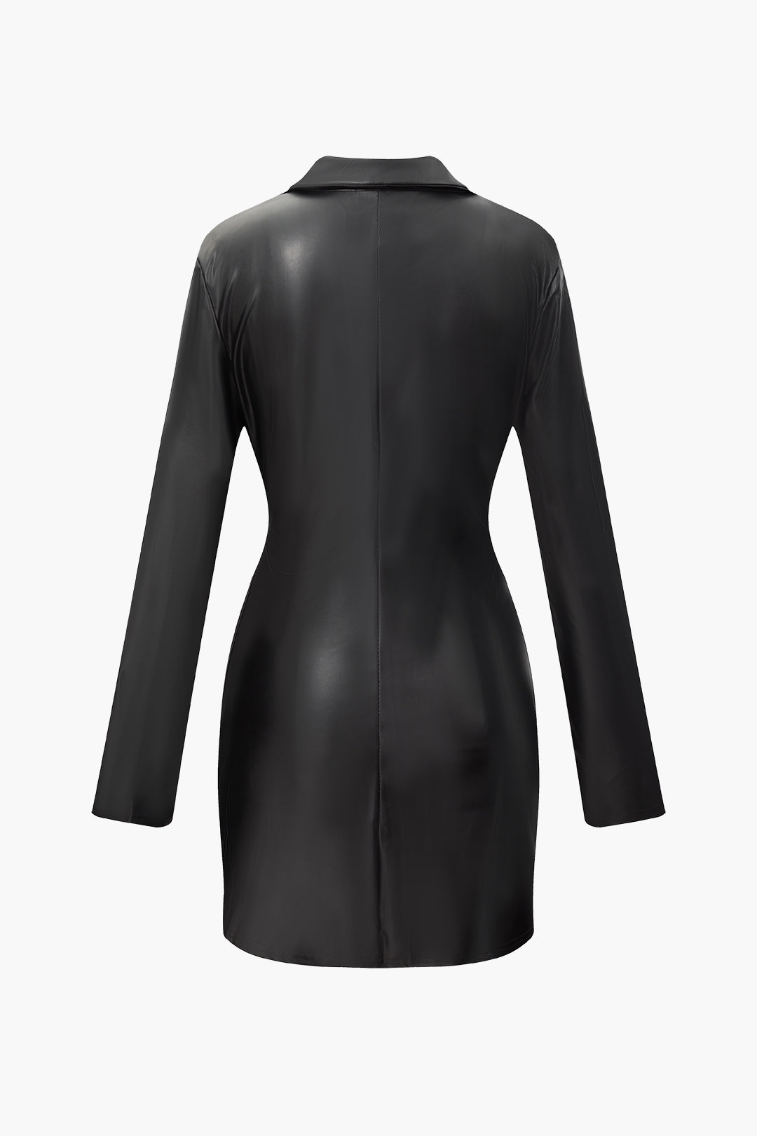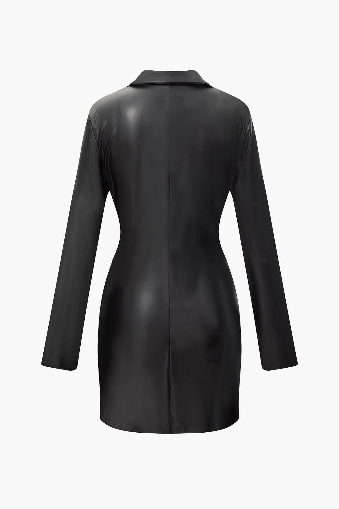 Faux Leather V-neck Notched Lapel Cut Out Slit Mini Dress