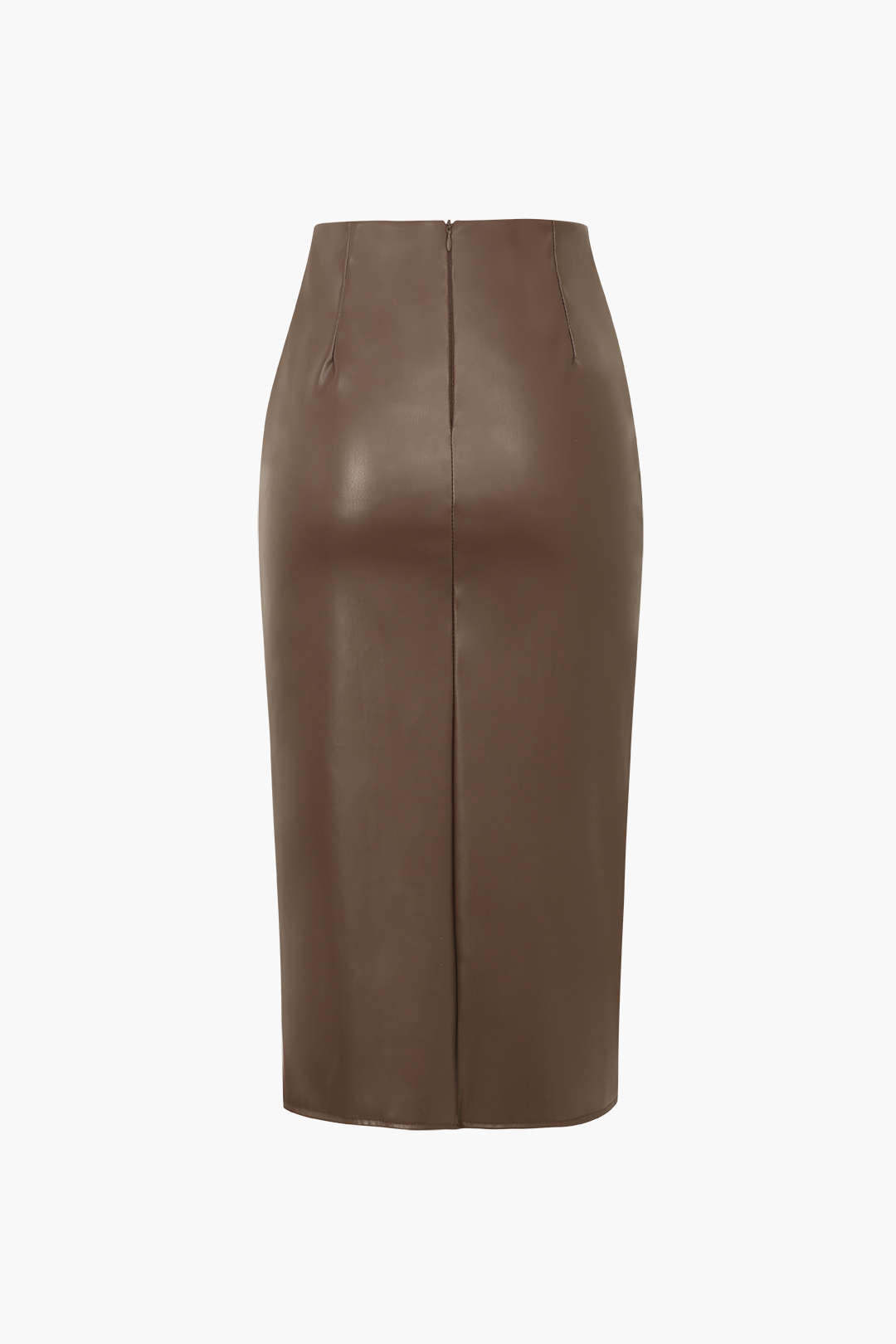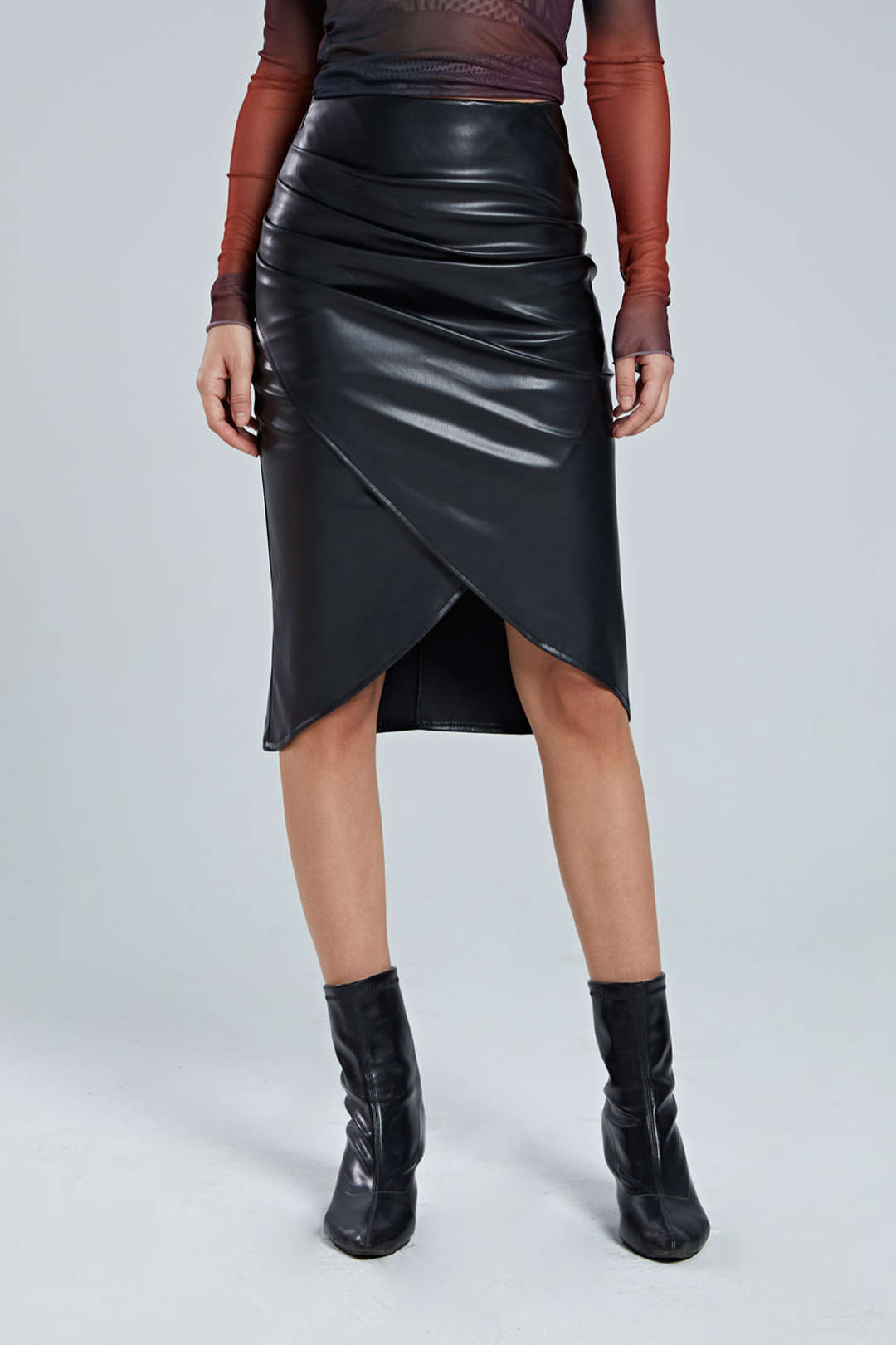 Faux Leather Wrap Ruched Midi Skirt