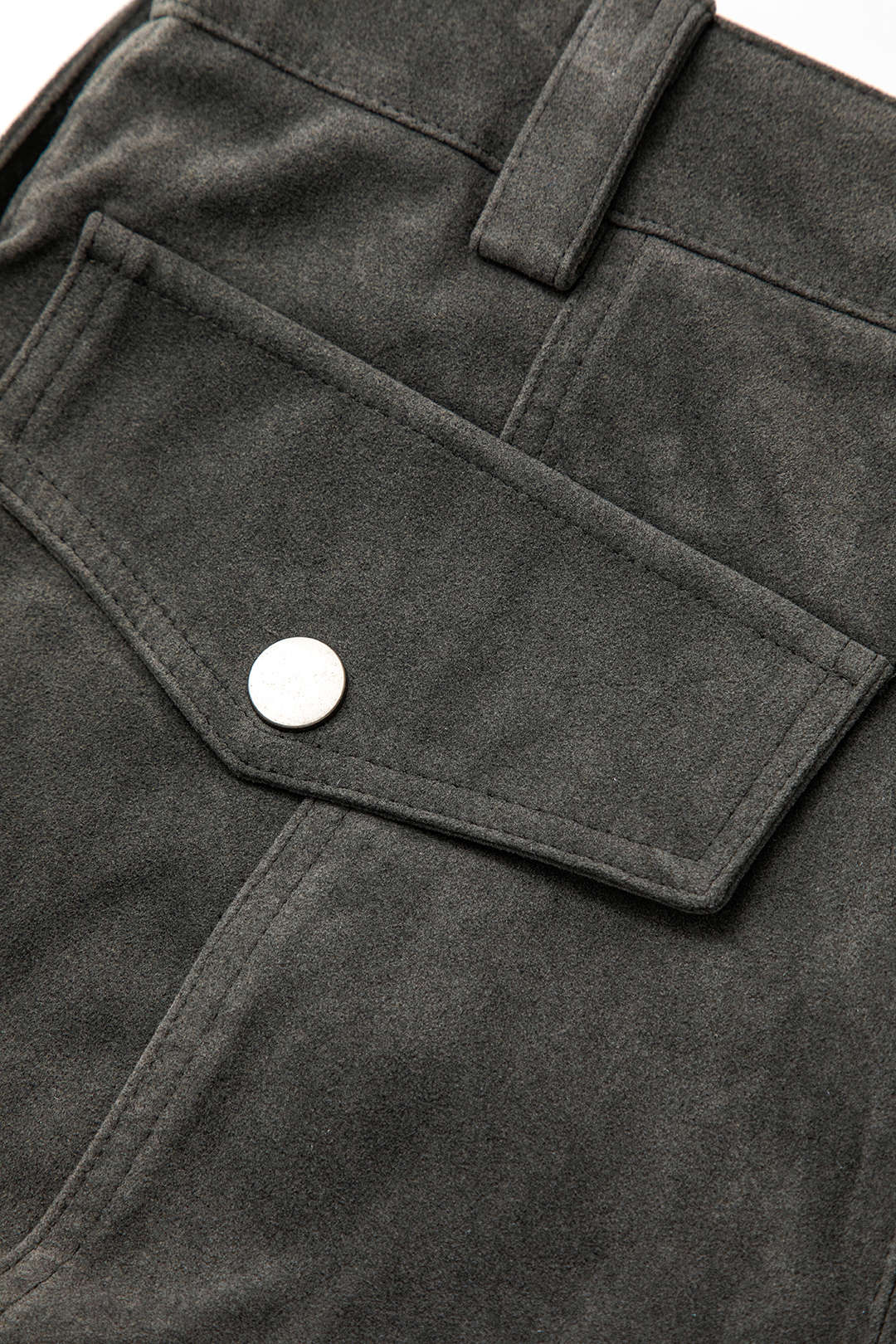 Faux Suede Button Up Flap Pocket Mini Skirt