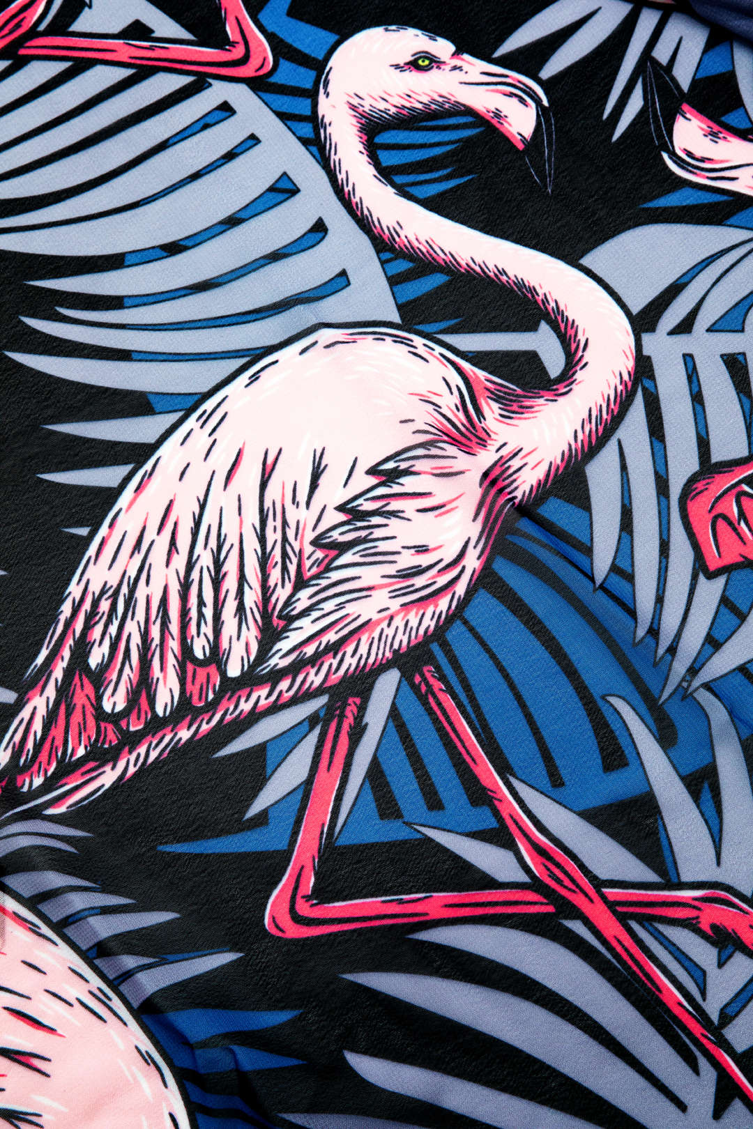 Flamingos Pattern Tie Swimsuit And Knot Sarong Skirt Set