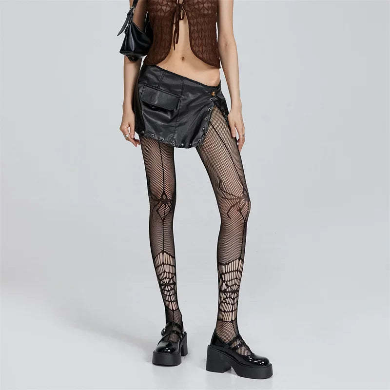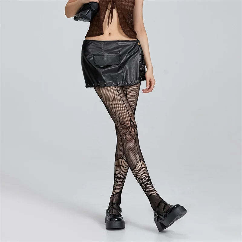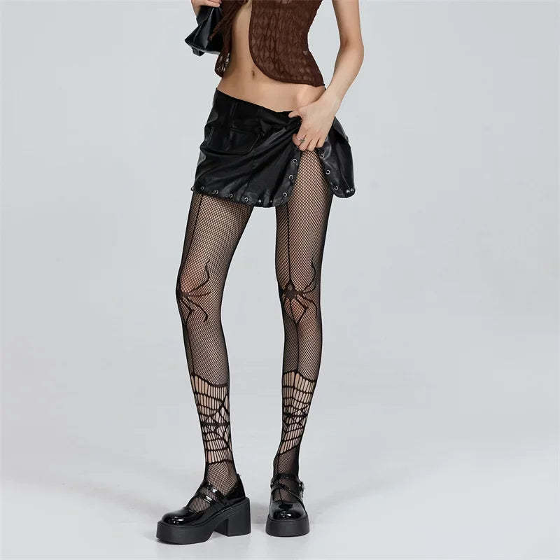 These Goth web tights feature an intricate spiderweb pattern that adds a bold. dark edge to any outfit. The sheer fabric feels lightweight and flexible. allowing comfortable movement while keeping the design visually striking. With a fitted silhouette that hugs the legs. they pair perfectly with mini skirts. shorts. or layered looks. Designed for expressive women's fashion. these tights bring attitude and texture without overpowering the outfit. A statement accessory that enhances confident women style and completes edgy women clothing combinations.
