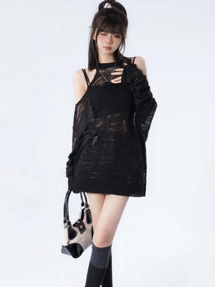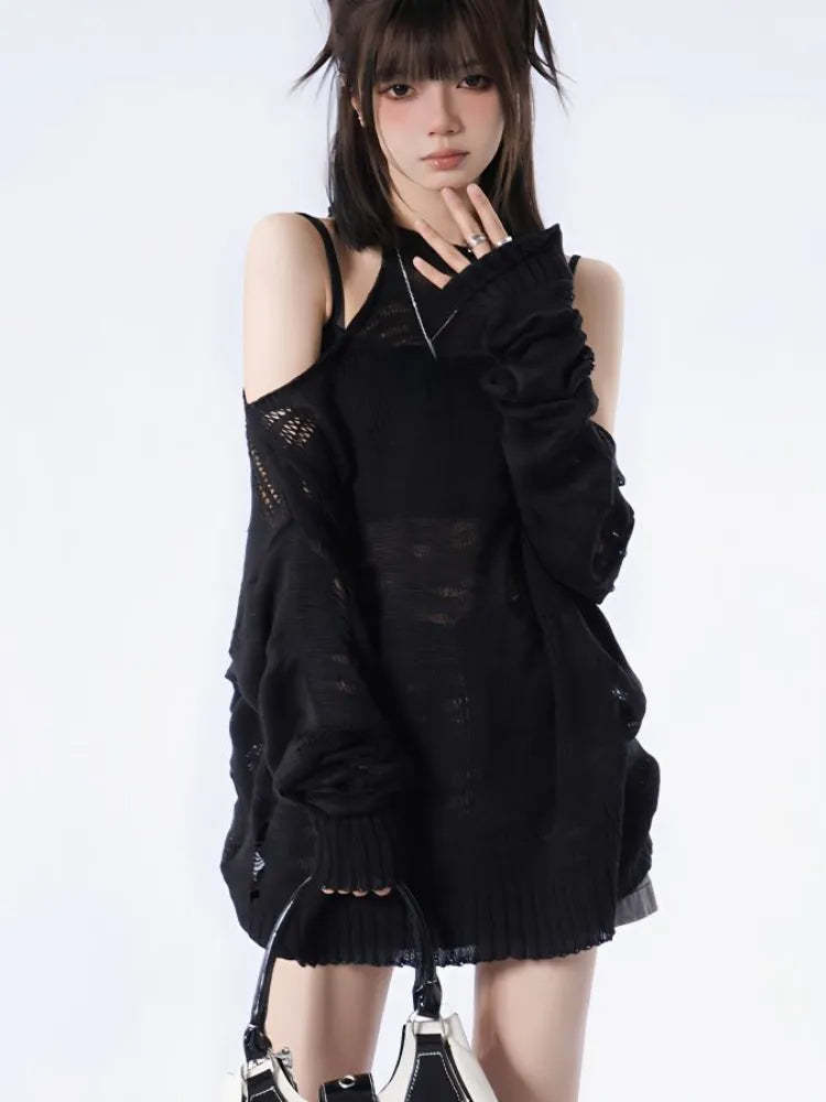 Grunge Distressed Cut-Out Fine Knitted Sweater