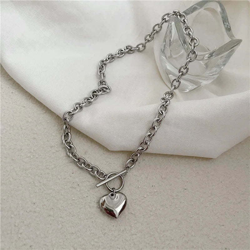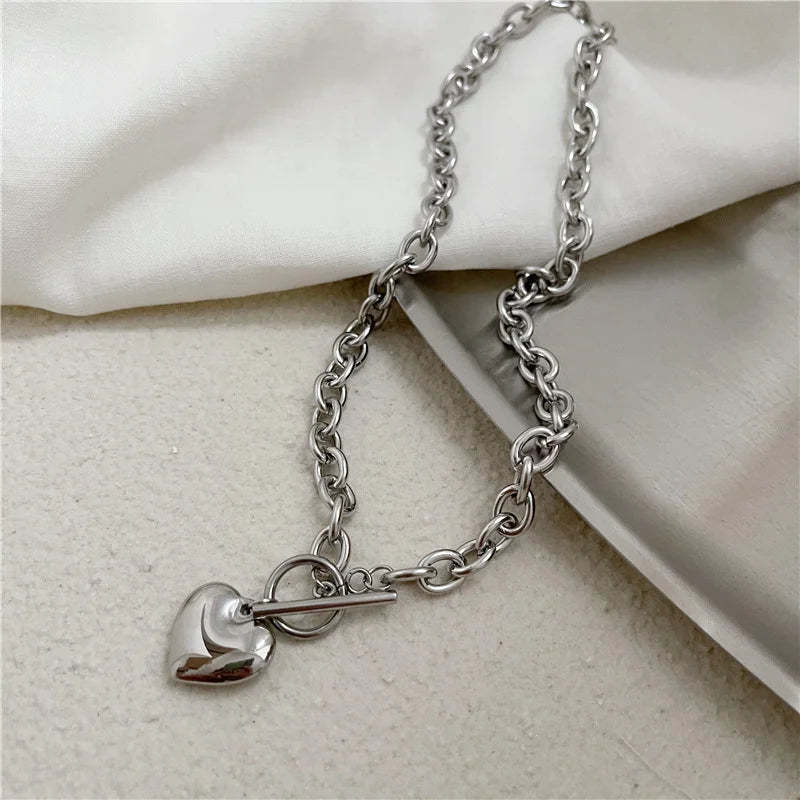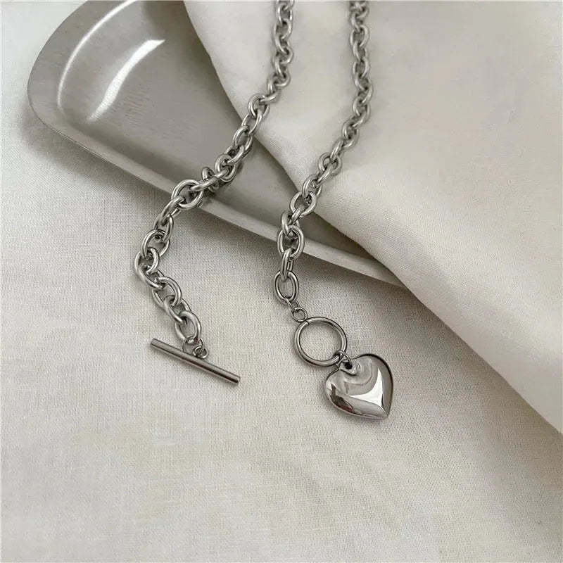 This heart toggle clasp necklace is a cool piece for daily style or parties. Its chunky chain and polished metal stand out. while the toggle clasp is easy to wear.