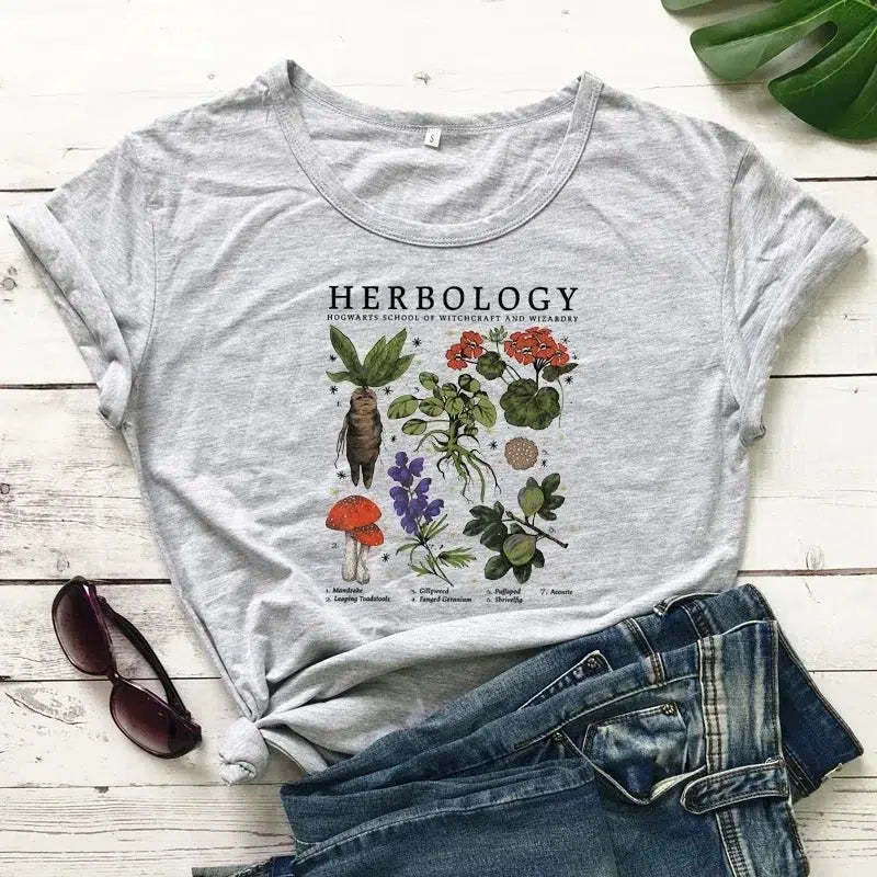 Wrap yourself in the enchantment of botany with this earth-toned tee. featuring a detailed array of mystical flora. Perfect for the nature enthusiast looking to add a touch of magic to their wardrobe.