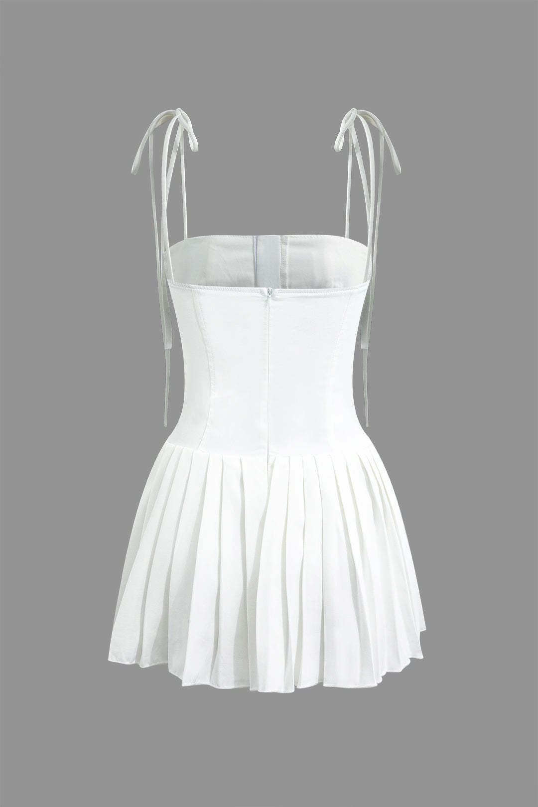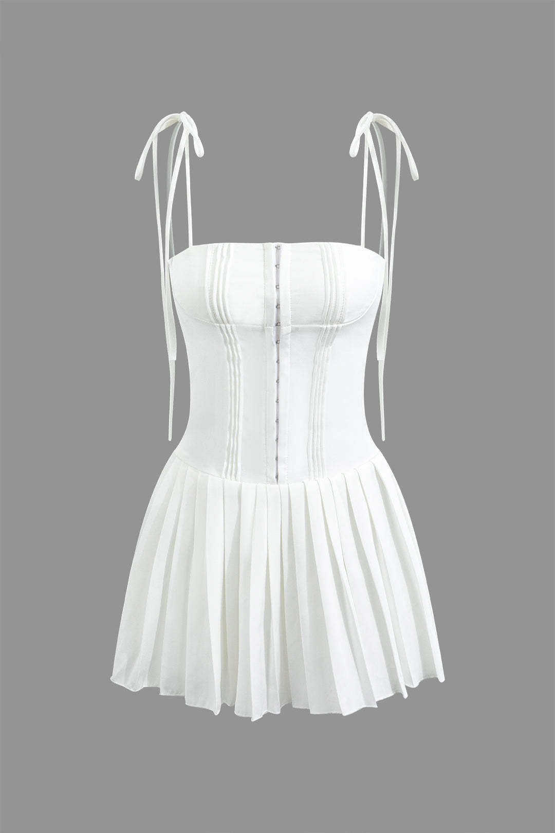 Hook And Eye Front Zip Up Back Pleated Cami Mini Dress