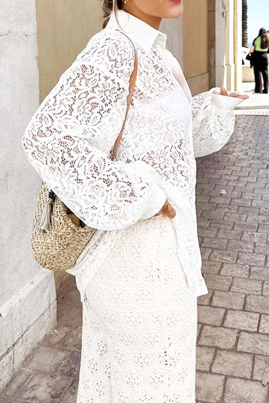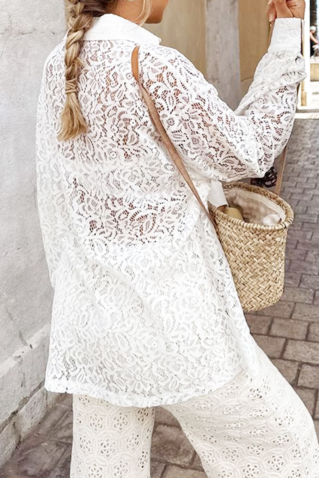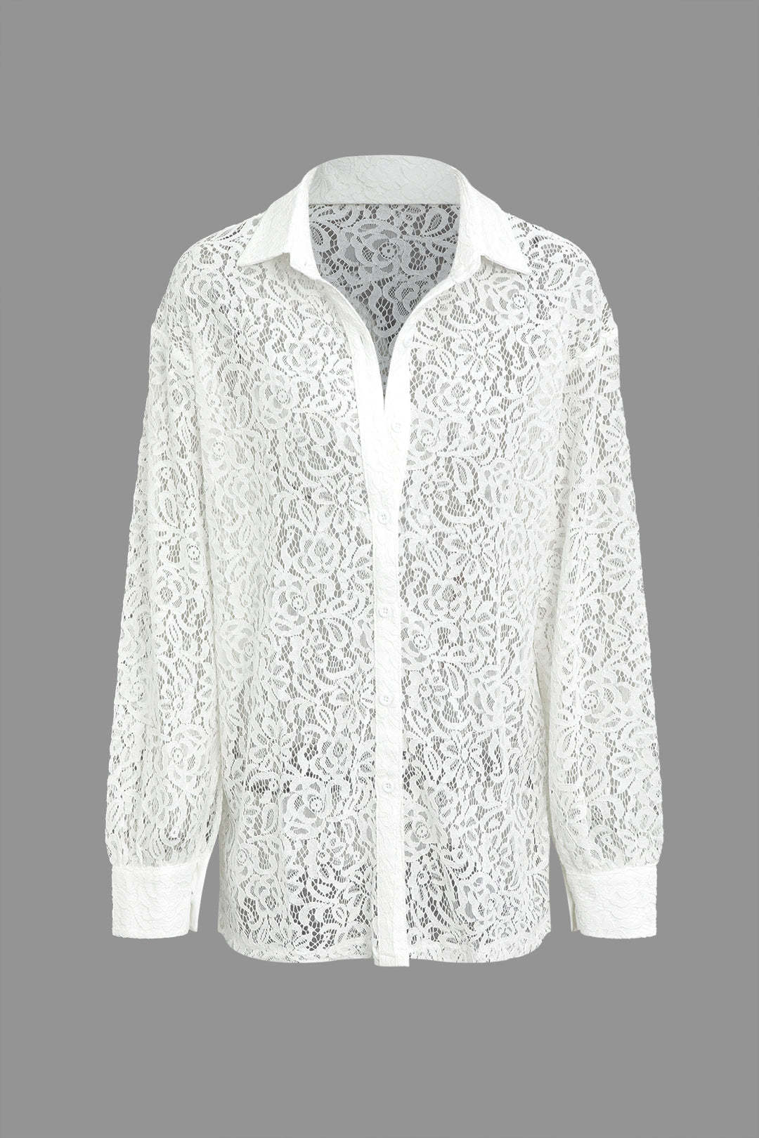 Lace Button Up Long Sleeve Shirt
