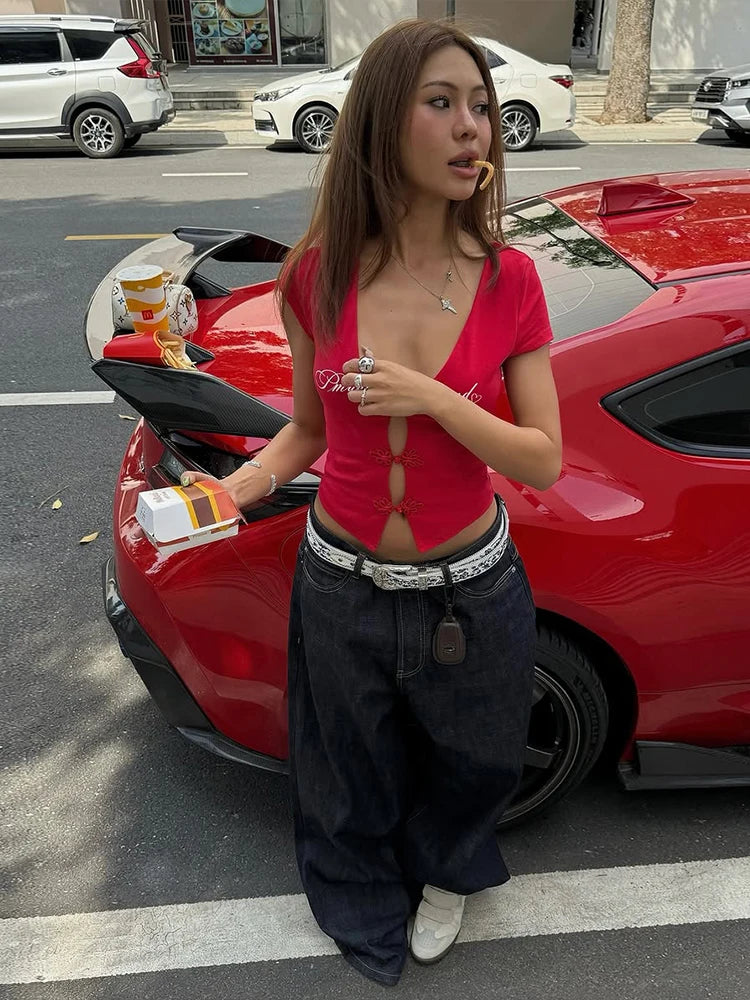 This lace-up cut-out top features a bold front design that combines adjustable lace details with strategically placed cut-outs. The fitted silhouette highlights the body while keeping the look sleek and confident. Made to sit close to the skin. it creates a statement effect without feeling overdone. The sleeveless cut and deep neckline add a striking balance between edgy and feminine. Designed for expressive women's fashion. this top pairs effortlessly with low-rise jeans. skirts. or layered accessories. making it a standout piece for confident women style and night-ready women clothing looks.