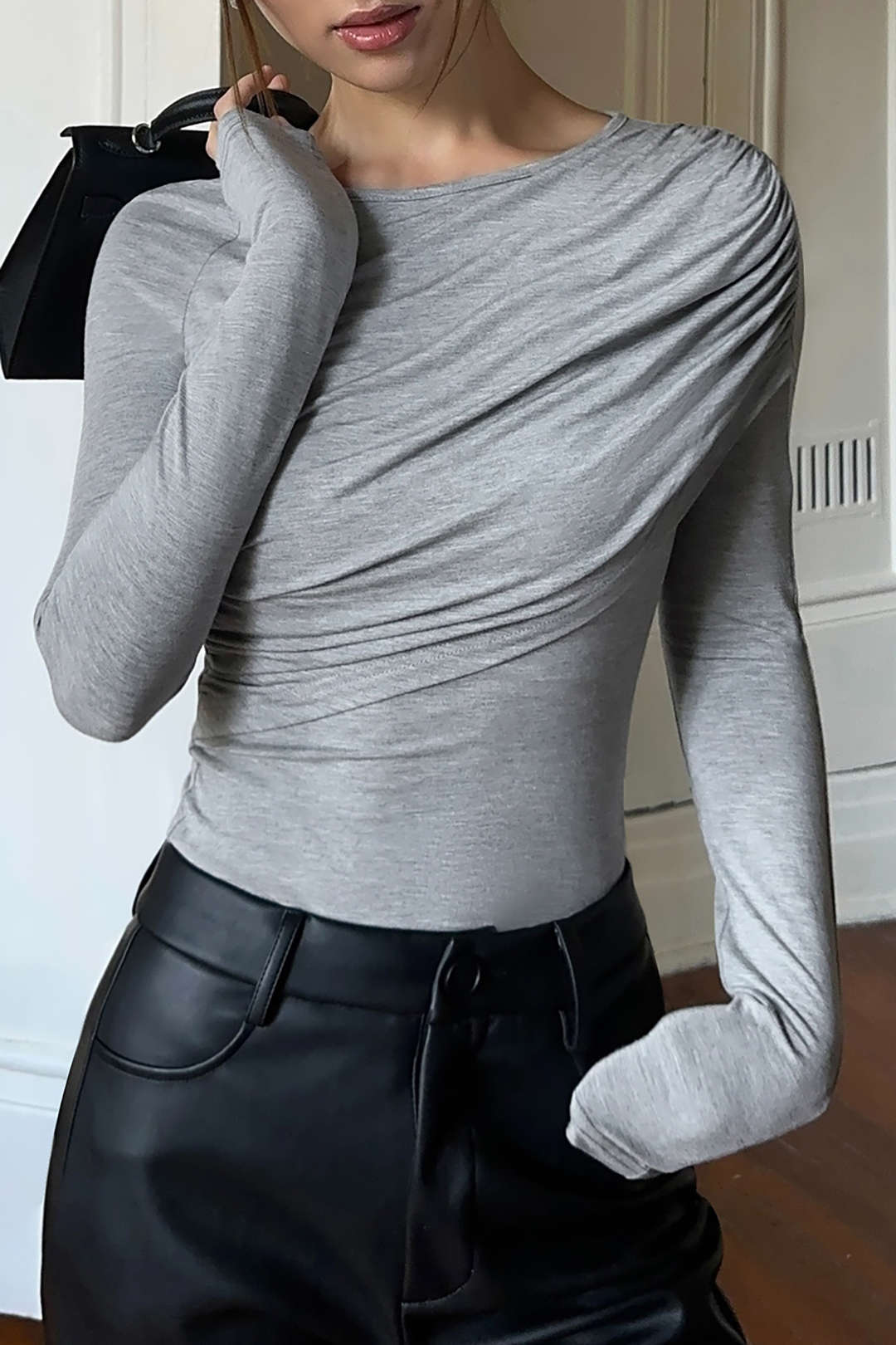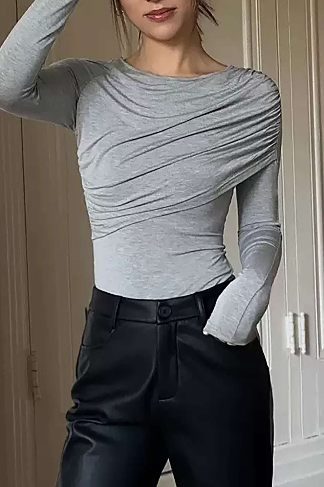 Layered Ruched Long Sleeve Top