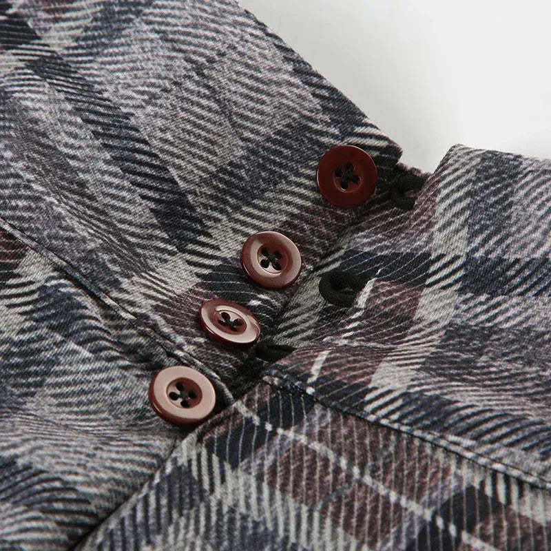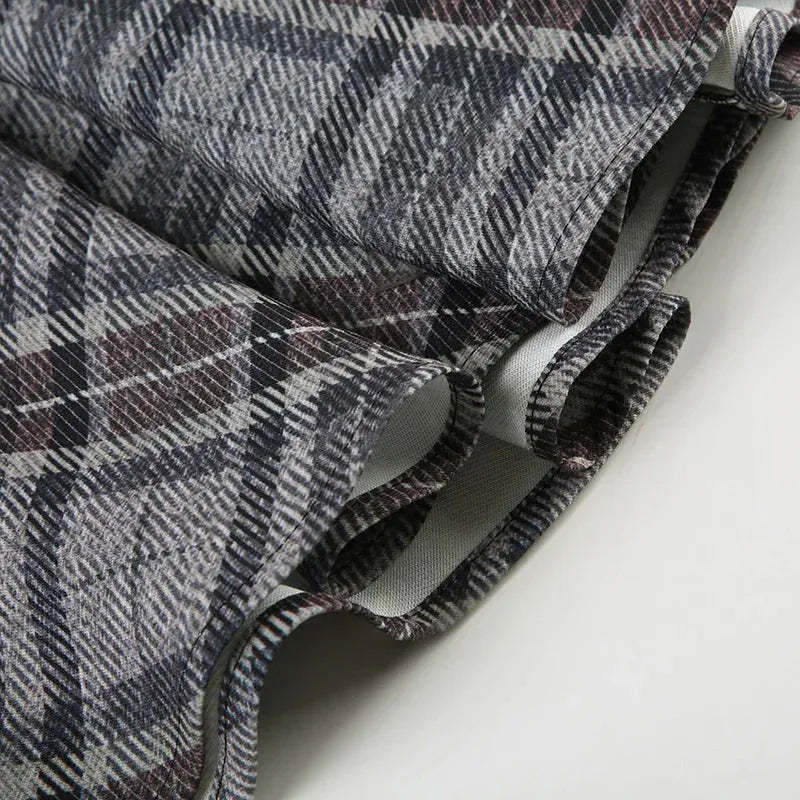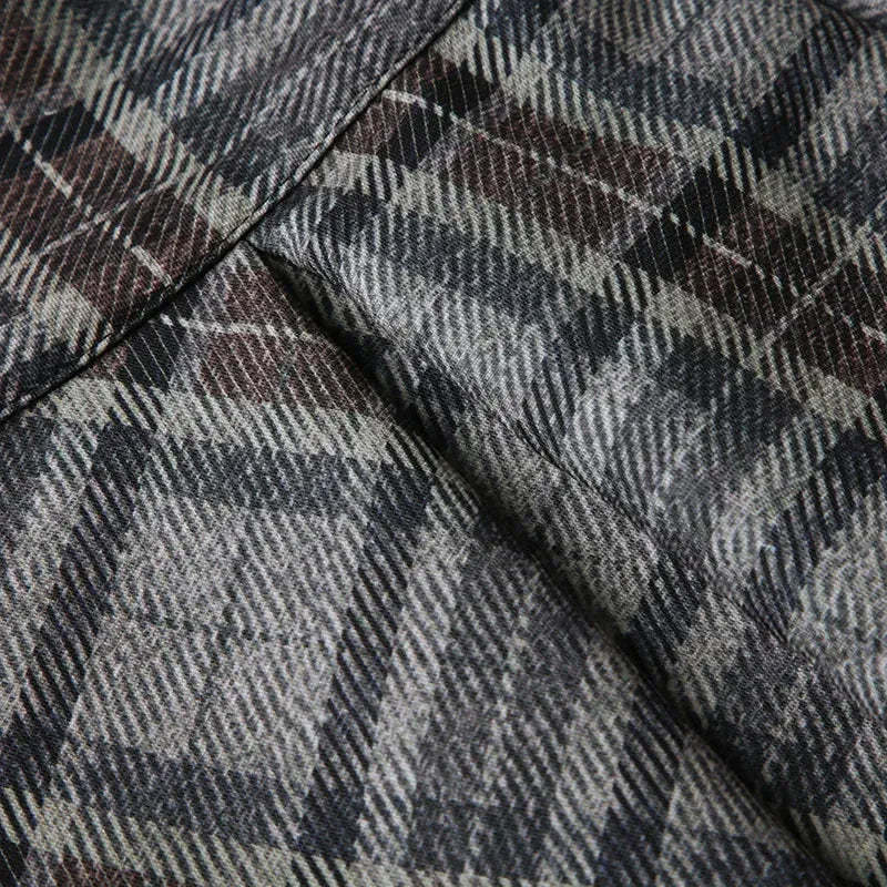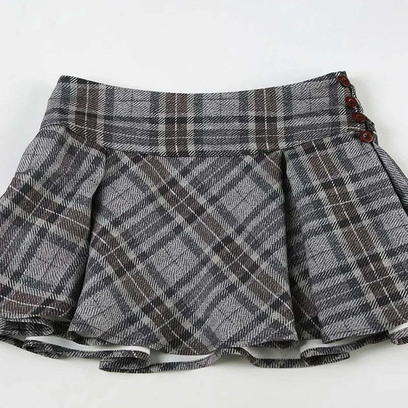 A nod to early 2000s edge. this low-rise plaid mini skirt brings grunge and Y2K together. Structured pleats add volume. while the short hem makes it a bold statement. Pair it with baby tees. cropped tanks. or layered knits for instant street style.