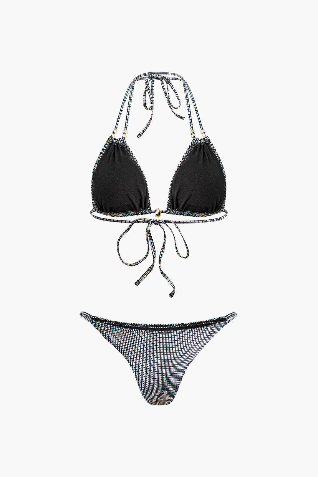 Metallic Grid Back Tie Halter Bikini Set