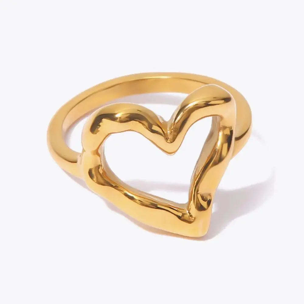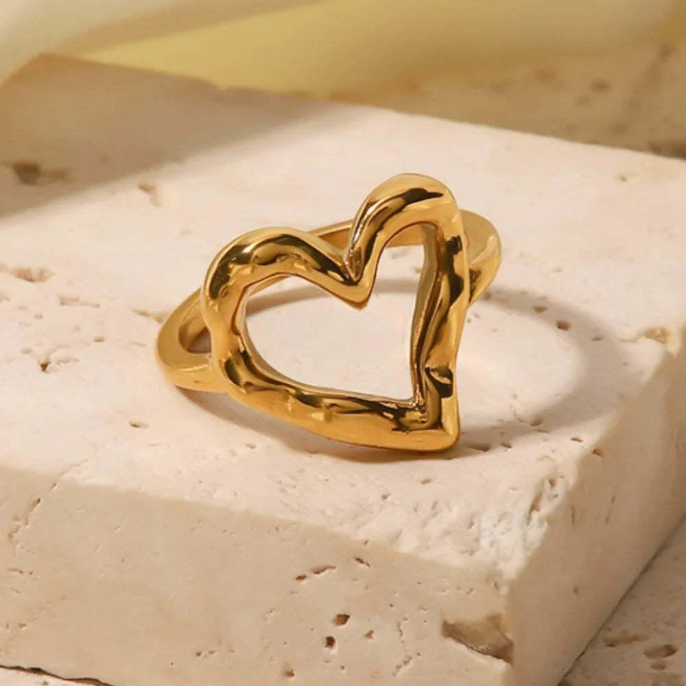 The Open Heart Ring is a delicate yet bold statement piece. featuring a unique freeform heart shape with a polished. high-shine gold finish. Its open-heart design symbolizes love and individuality. making it a perfect gift or everyday accessory.