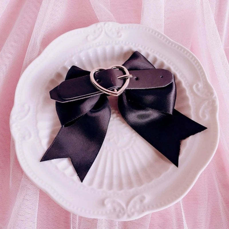 Adorn your hair with these charming pins. featuring a belted bow and a whimsical heart pendant. They're a sweet touch of gothic romance meets pastel daydreams. perfect for adding a hint of playful edge to your look.
