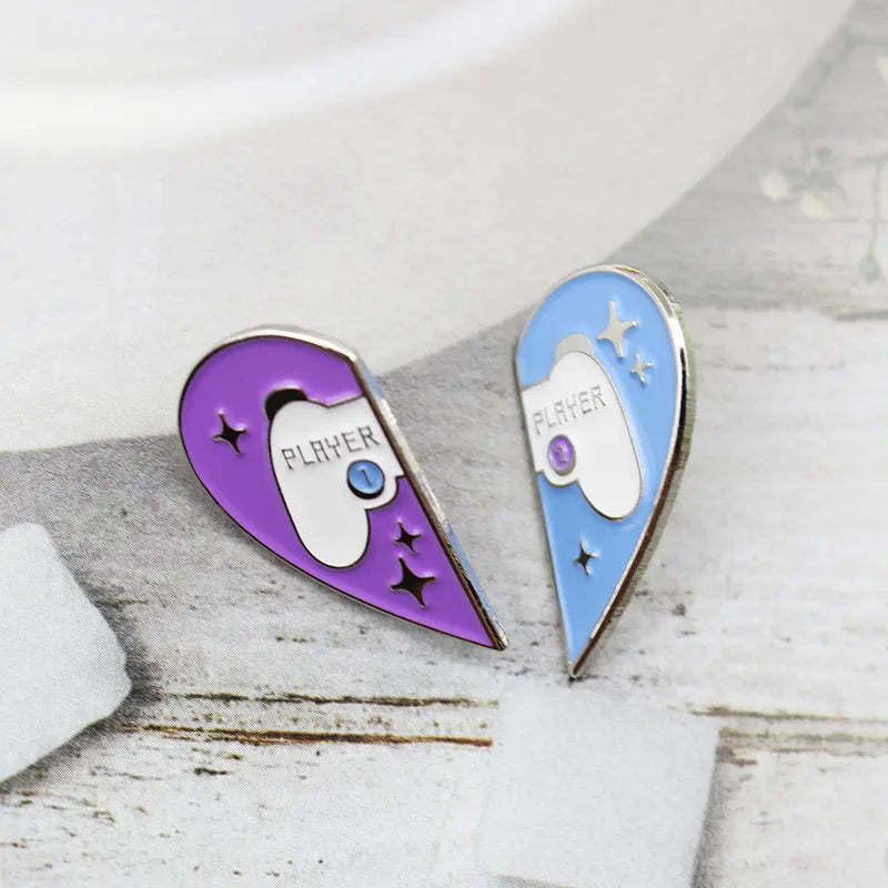 This set of two heart-shaped pins is perfect for couples or friends who want to share a cute and funny style. These pins are a charming way to celebrate friendship or love. adding a playful touch to any outfit.