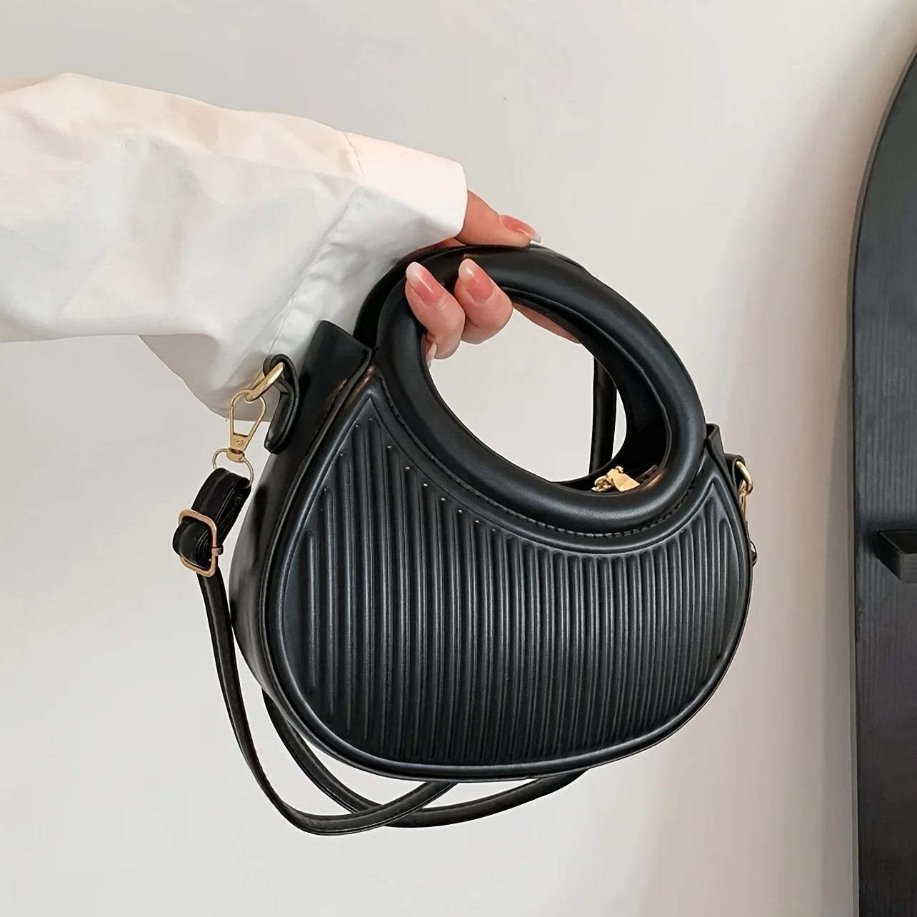 Ribbed Top-Handle Bag brings a compact silhouette with a textured ribbed surface and structured form. Designed to hold daily essentials without bulk. this bag features a firm body and curved top handle for easy carry. Its balanced proportions suit casual outfits and polished looks. making the ribbed top-handle bag a versatile option for everyday styling.