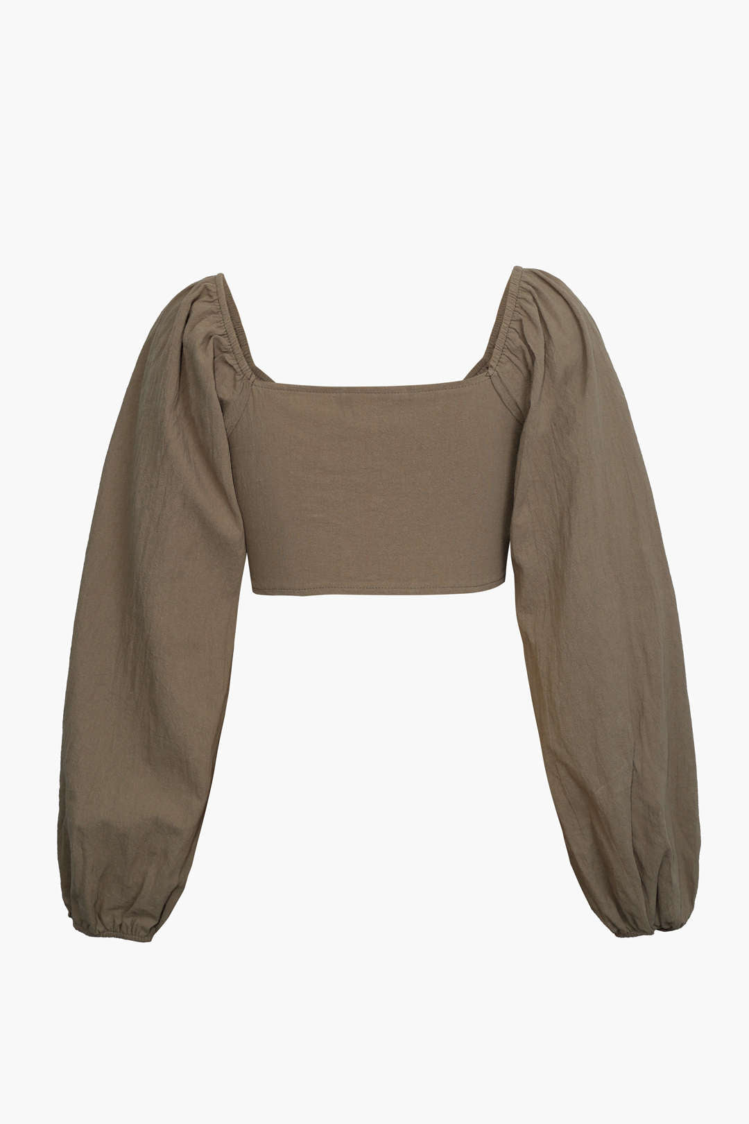 Ruched Bust Tie Front Long Sleeve Crop Top