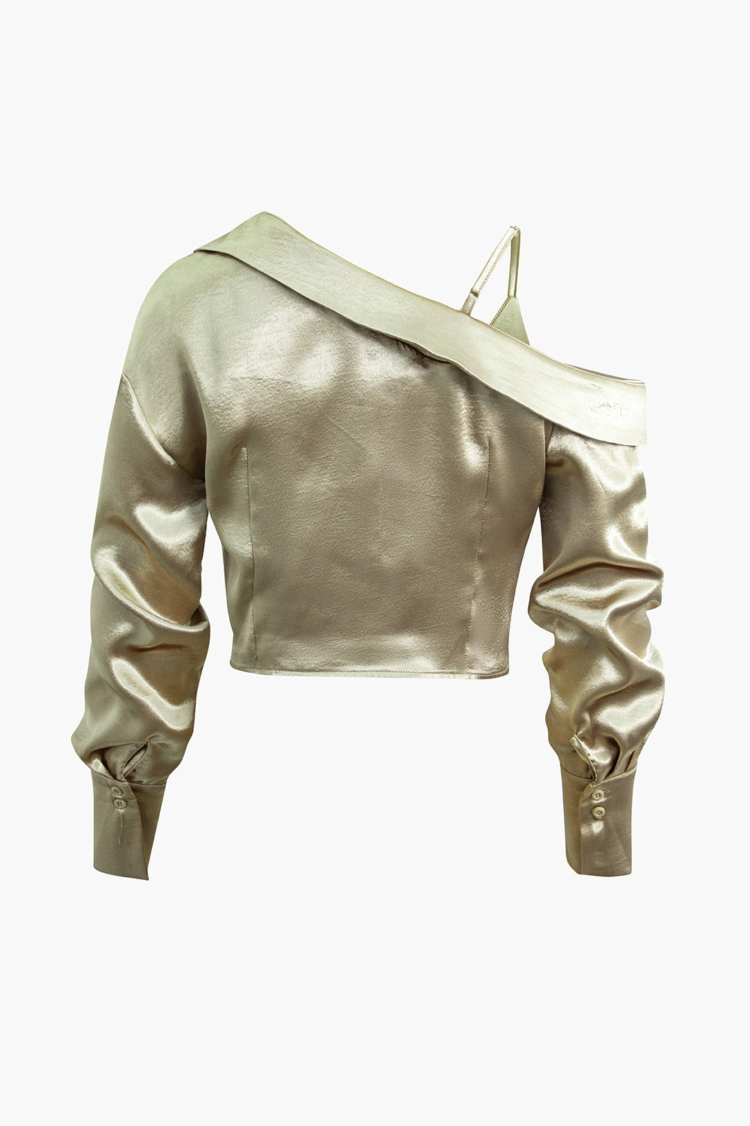 Satin Asymmetric Cold Shoulder Crop Blouse