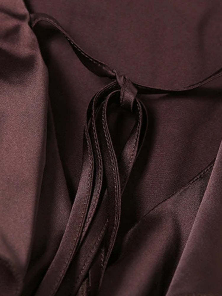 The Satin Ruffled Mini Dress is your golden-hour glow-up essential. With cascading ruffles. bell sleeves. and a silky-soft drape. it's giving vintage romance meets modern siren. The tie-front neckline adds a coquette twist. making it perfect for candlelit dinners. soirées. or dreamy photo ops.