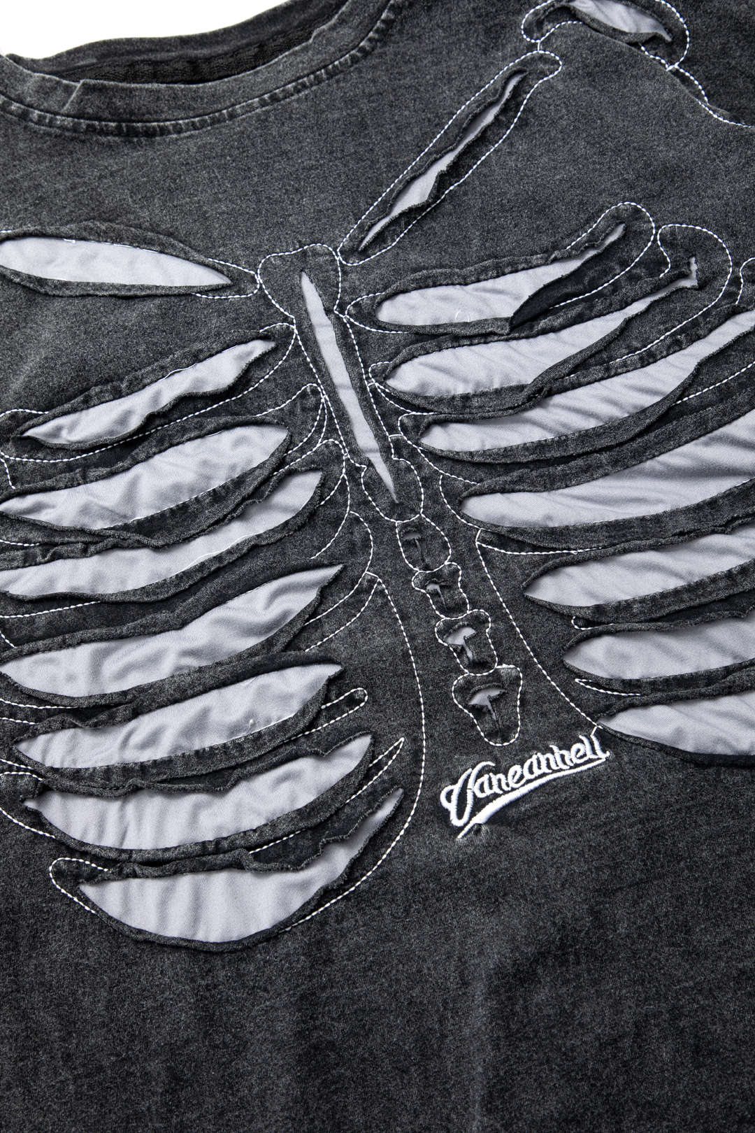 Skeleton Design Round Neck Distressed T-shirt