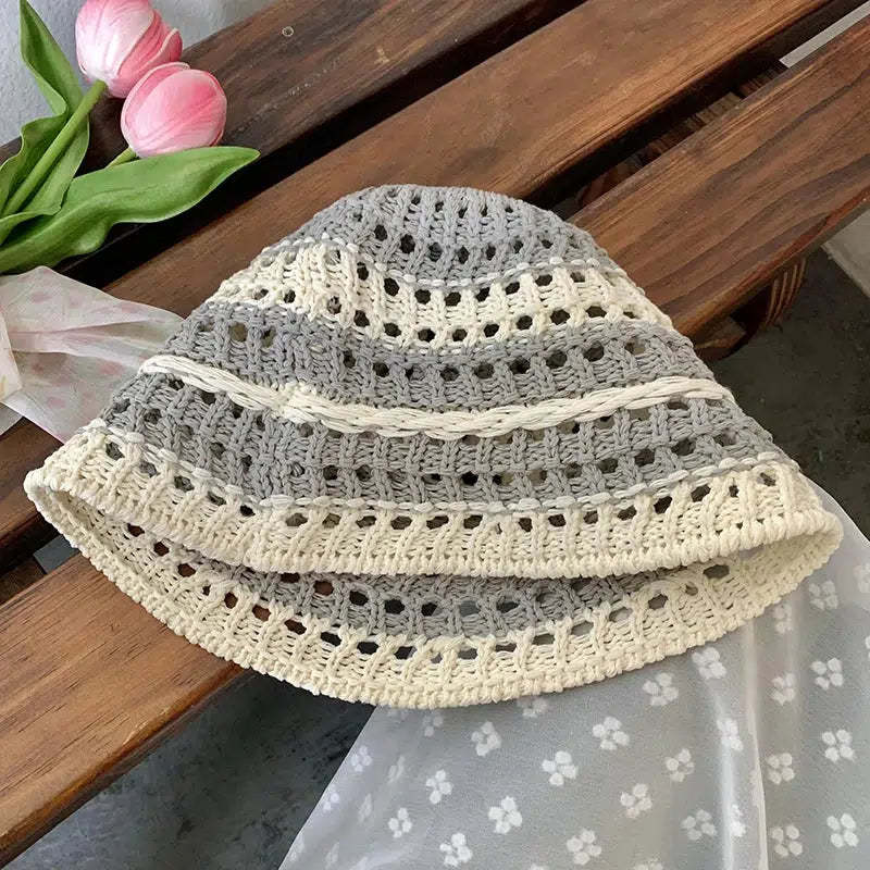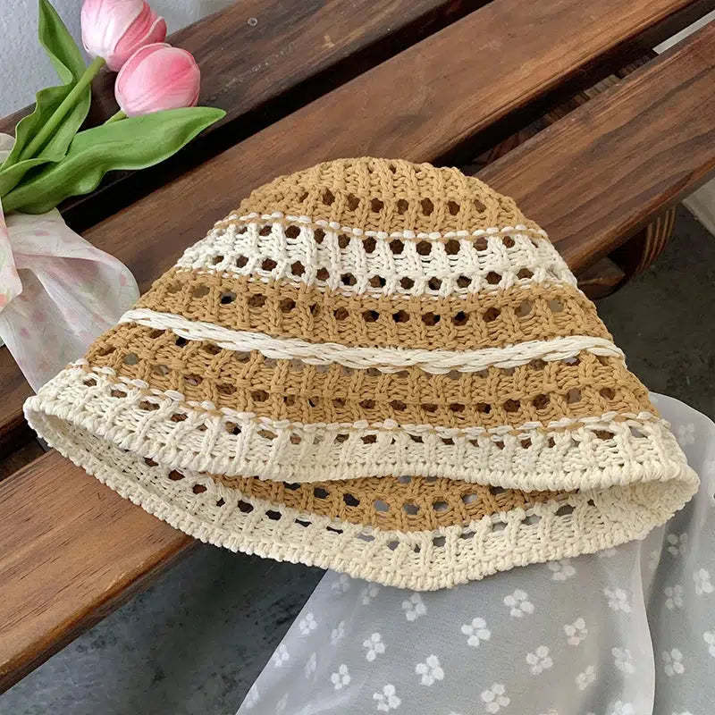 Stay stylish and cool with this charming crochet hat in pastel shades. Perfect for adding a touch of whimsy to your summer outfits. this accessory ensures comfort on hot days with its breathable material. Ideal for beach trips. picnics. or casual outings. pair it with your favorite sundress or casual wear for an effortlessly cute look. This summer essential is a must-have for any soft girl wardrobe.
