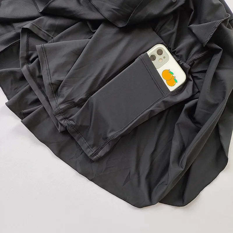 Stay active in style with this sport mini skirt. featuring a convenient phone pocket. The flared design provides freedom of movement. making it perfect for workouts or casual wear. Combine fashion and functionality effortlessly with this versatile piece.