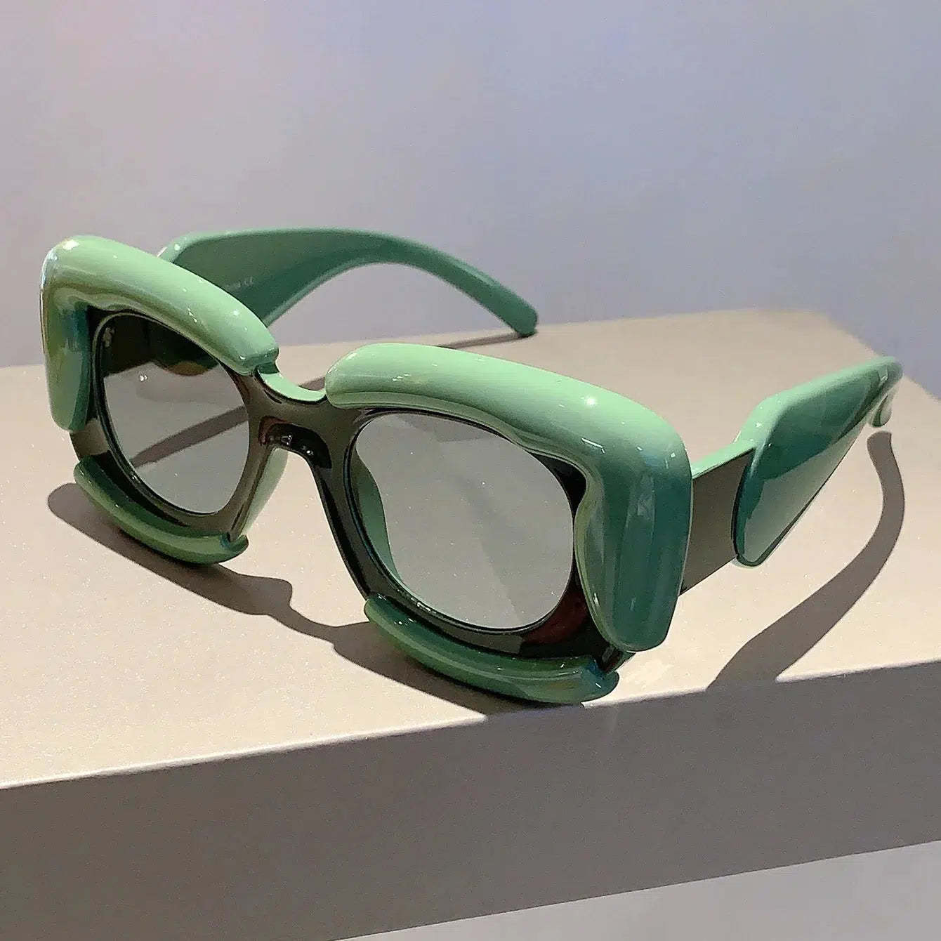Elevate your accessory game with the Square Puffer Sunglasses. boasting square frames. thick temples. and tinted lenses. These sunglasses are a must-have for anyone looking to stand out at parties or festivals. offering a unique and cool style that's sure to turn heads.